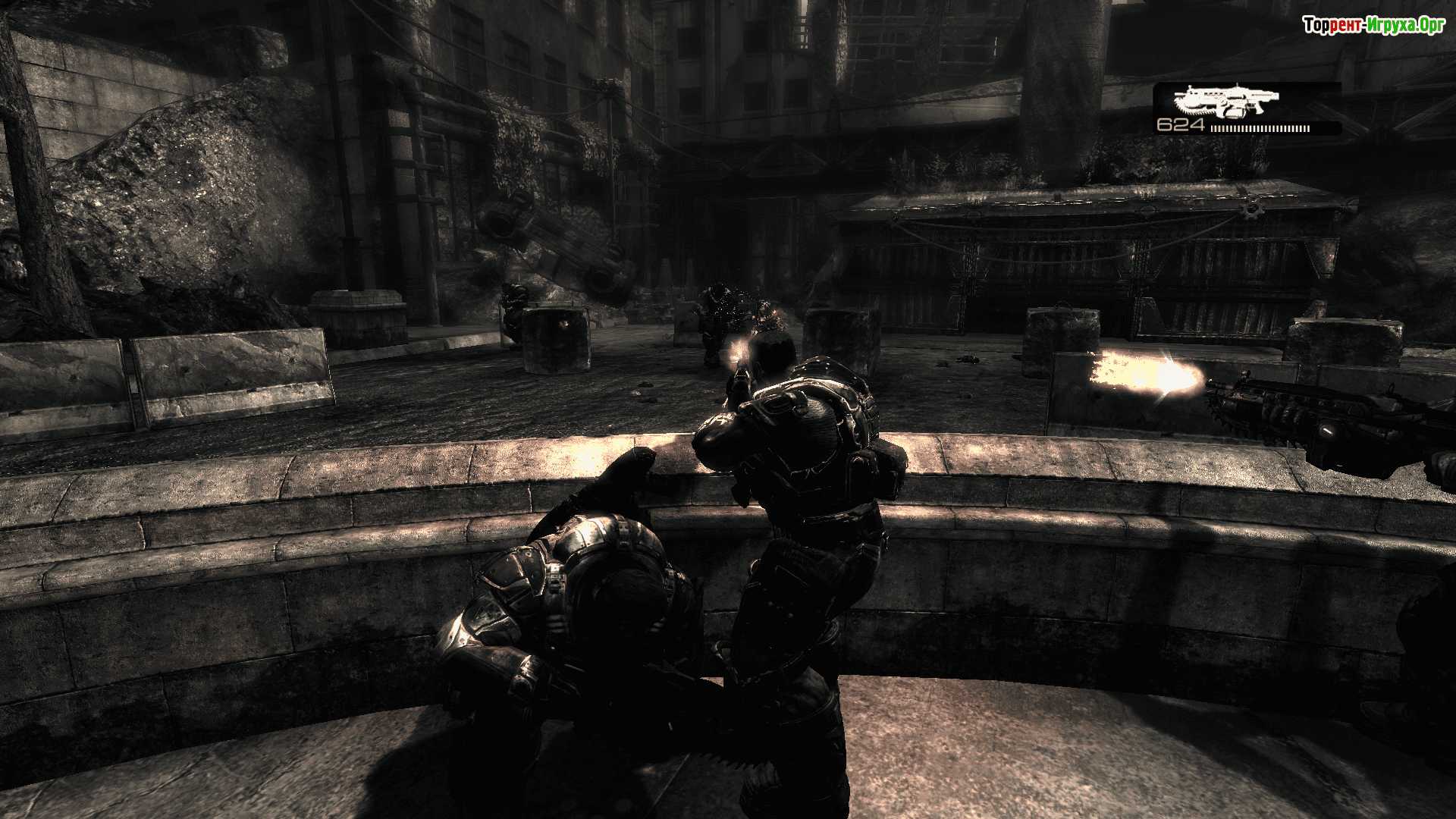 Также реализована возможность выбирать комбинации текста и озвучки на русском или английском языках. Игра «Gears of War» была выпущена в 2007 году, разработчиками выступили Epic Games и People Can Fly. Платформа для игры — PC. Интерфейс доступен на русском и английском языках. Защита в этой версии отключена (вшита таблетка), представленная сборкой {anon/catspaw}.
