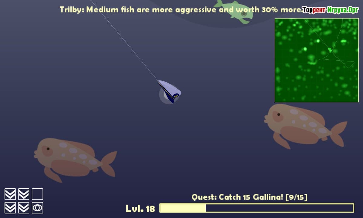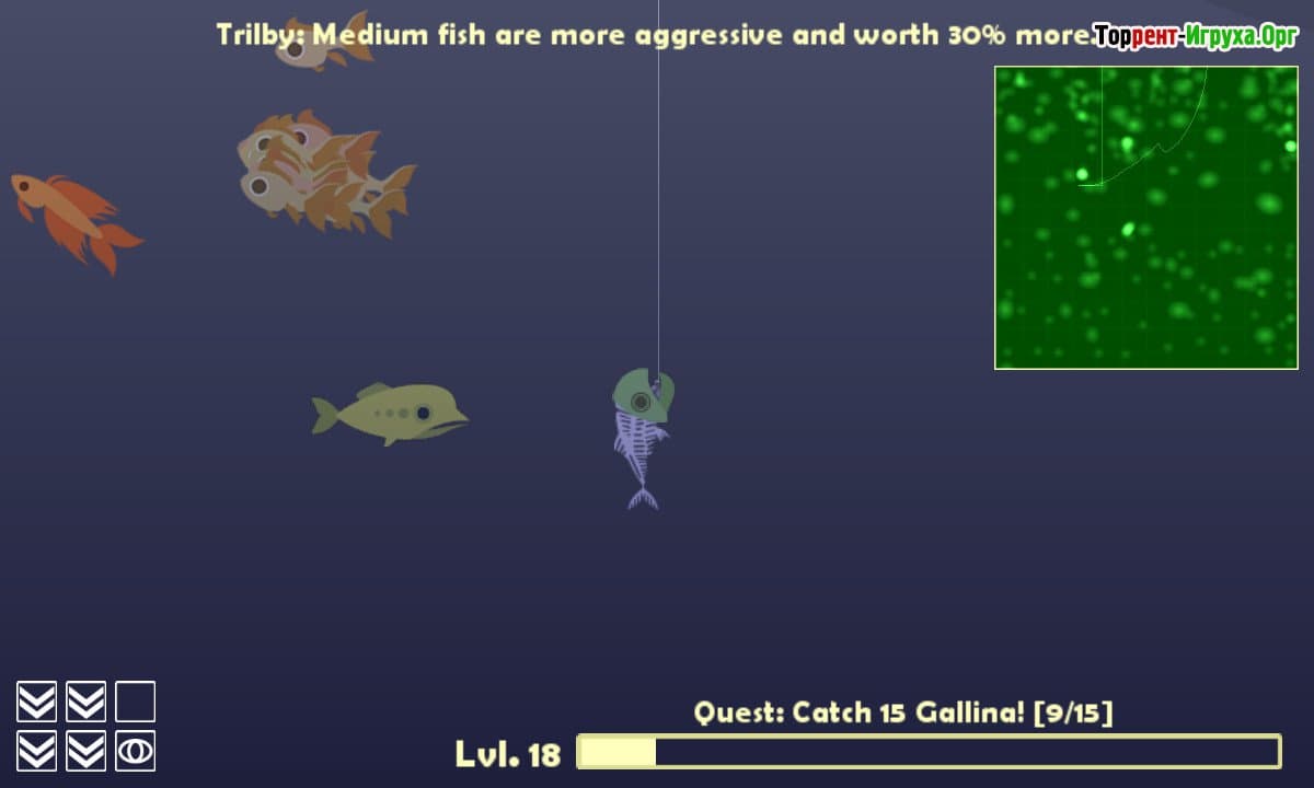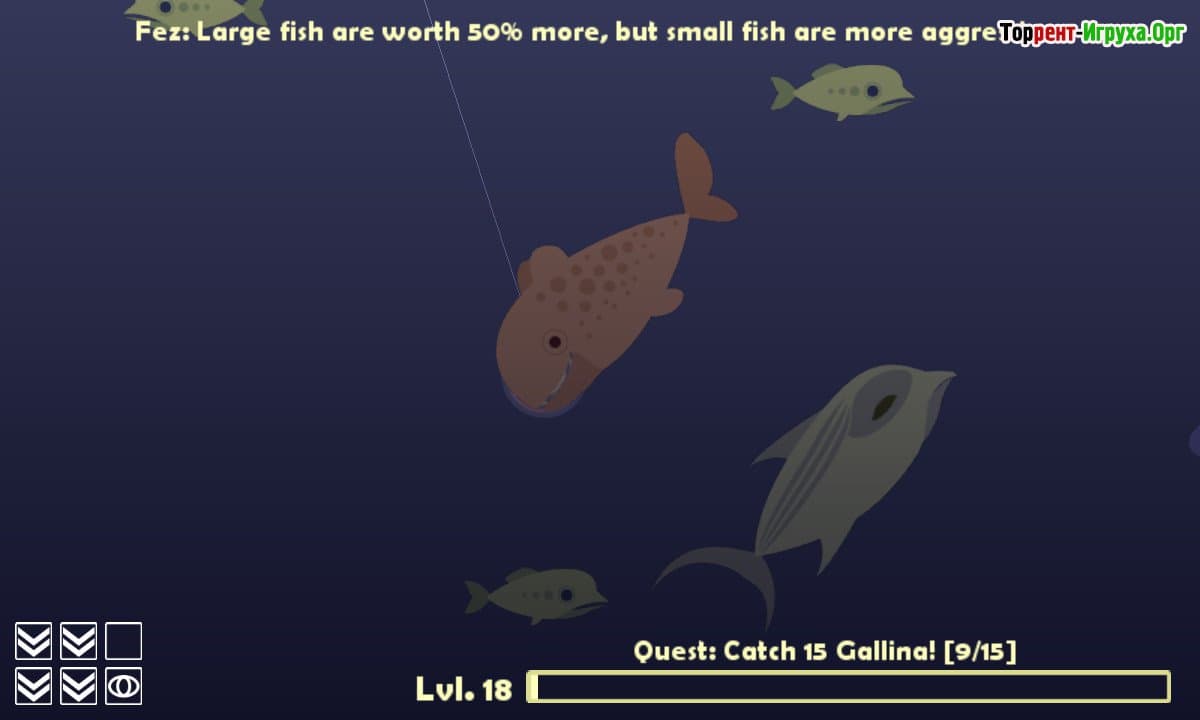 Игровой процесс в Cat Goes Fishing выполнен в стиле простой аркады, где управление удочкой становится ключевым элементом. В начале у вас будет базовая удочка с ограниченной дальностью заброса, что подходит для ловли небольшой рыбы. Со временем, набирая большой улов, можно модернизировать снаряжение, добавляя ракеты, бомбы и другие полезные аксессуары. Эти улучшения открывают возможность охотиться на более ценные виды рыбы, делая игру динамичнее и разнообразнее.