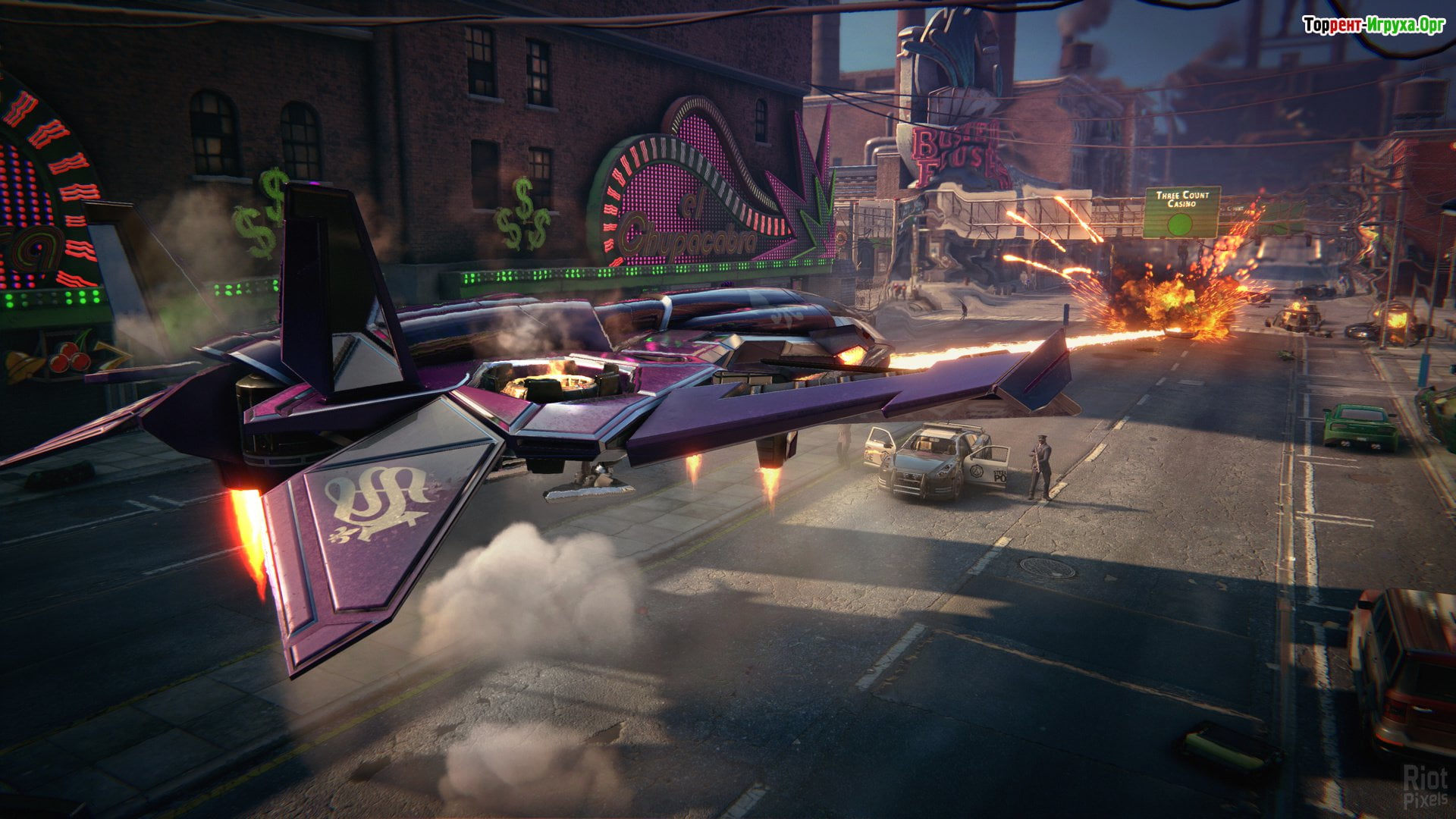 Безудержное веселье и динамичные перестрелки остаются визитной карточкой игры. Вы свободно передвигаетесь по городу, выбирая транспорт на свой вкус, и участвуете в ярких боях с уникальной системой ближнего боя, где эффектные комбо и зрелищные добивания, такие как граната во рту противника, выделяют игровой процесс. Это напряжённое, но при этом невероятно увлекательное действие подарит много адреналина и удовольствия.