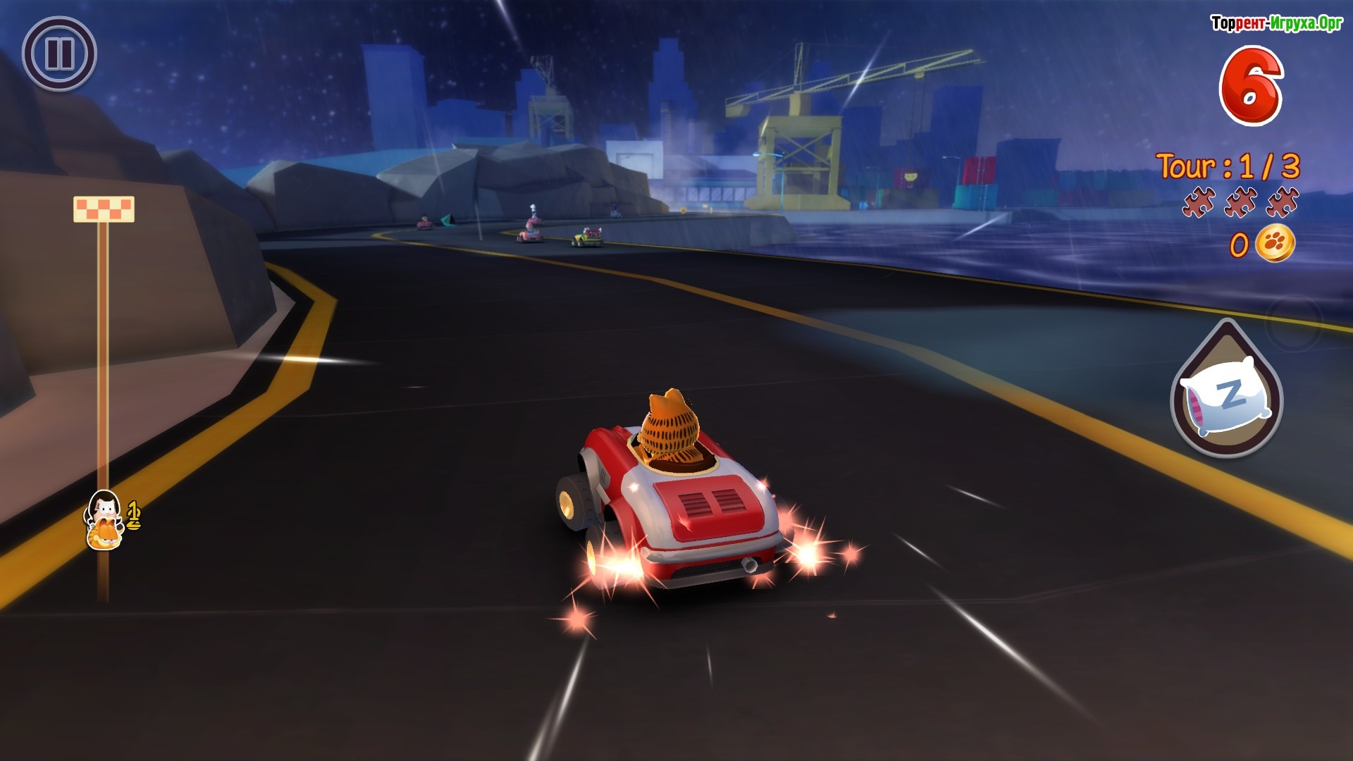 Garfield Kart – это захватывающая гоночная аркада, созданная в ярком и забавном стиле, который отлично передает атмосферу культового мультфильма. Игрокам предстоит управлять любимыми героями и участвовать в динамичных гонках, что делает игровой процесс увлекательным и необычным. Разработчик Artefacts Studio представил проект в 2013 году, привнеся в genre веселую мультяшную графику и живую анимацию.