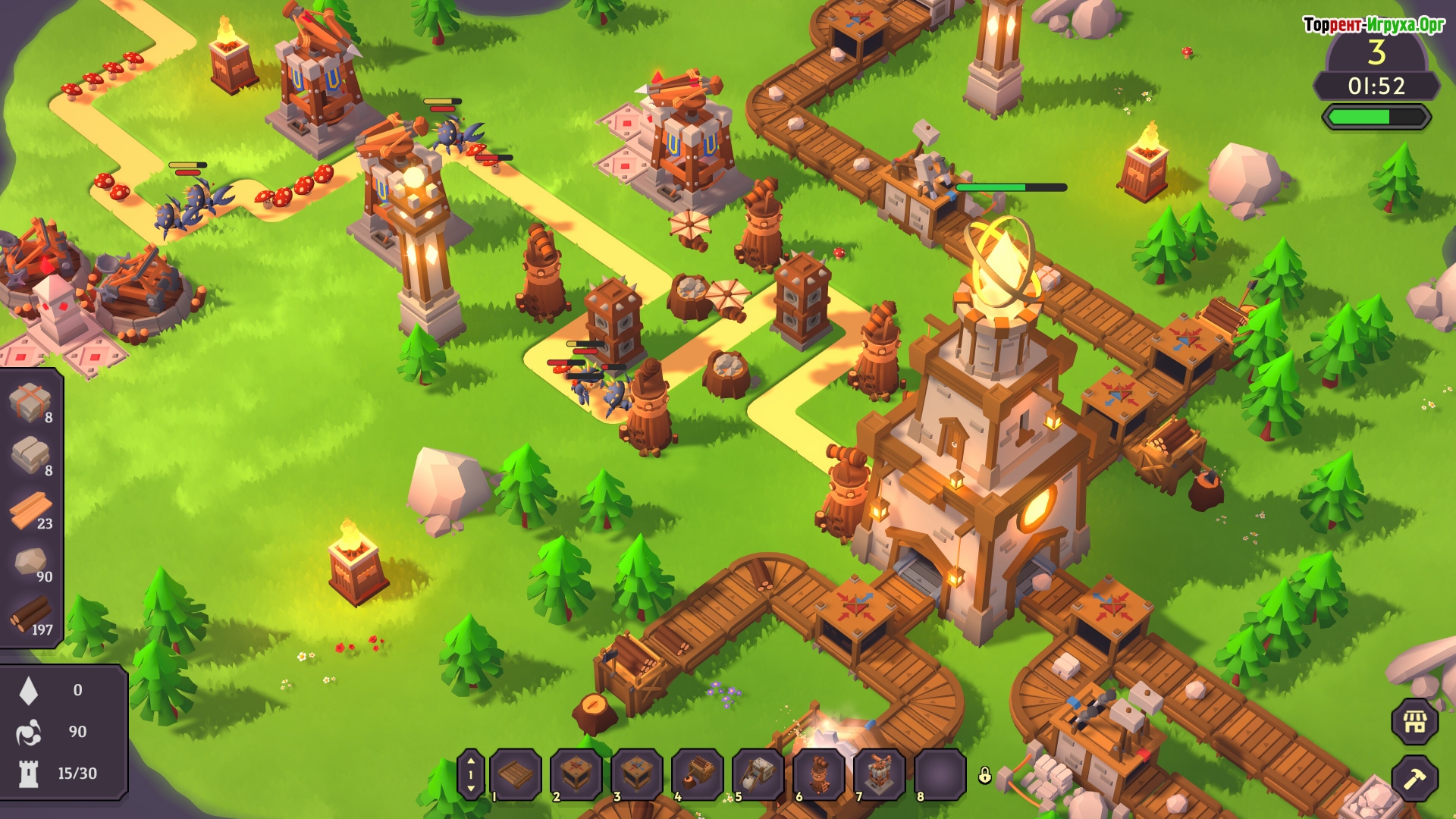 В игре акцент сделан на непрерывном строительстве, расширении и модернизации фабрики. Сбор ресурсов играет ключевую роль, позволяя создавать и улучшать башни, что важно для успешной защиты. Исследуйте карту, на которой расположены не только вражеский замок и сокровища, но и неожиданные опасности, которые могут повлиять на ваше продвижение. Процедурная генерация обеспечивает уникальность каждого прохождения, добавляя разнообразия и новых вызовов.