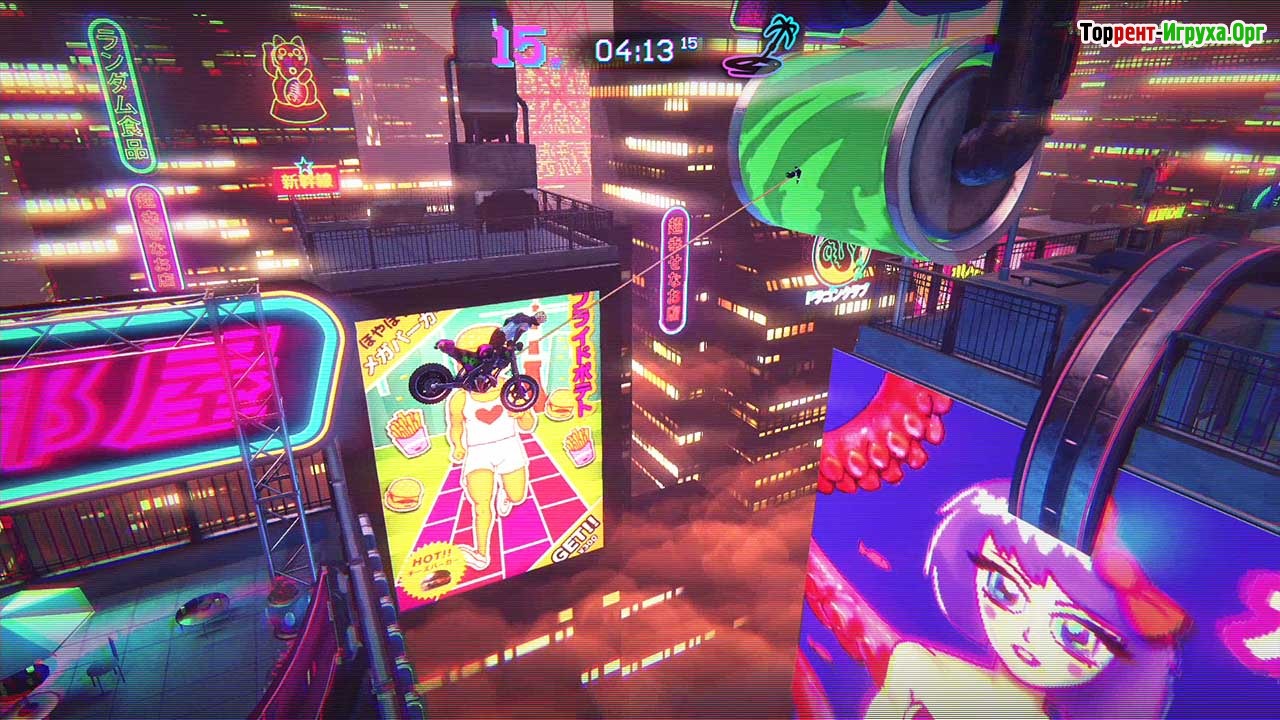 В этой игре вас ждут не только мотоциклы, но и разнообразный транспорт – от велосипеда и грузового вагона до прохождения уровней пешком. Увлекательный игровой процесс расширен за счёт возможности использования крюка для захвата и огнестрельного оружия. Множество уникальных локаций, таких как Вьетнам, Майами, Токио и даже космос, делают приключения особенно захватывающими.