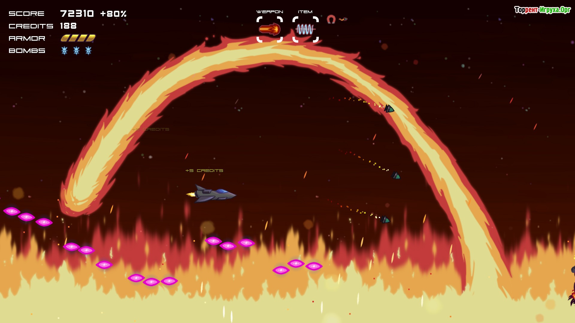 В игре доступно около 20 уникальных путей прохождения, а также примерно 25 масштабных боссов, каждый из которых потребует особого подхода. Необходимо проявить стратегическое мышление и ловкость, чтобы справиться с постоянно меняющимися волнами врагов и добиться успеха. Звуковое сопровождение и возможность модернизировать собственный корабль делают игровой процесс еще более захватывающим.