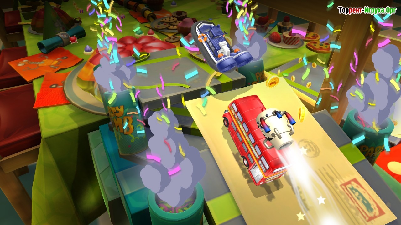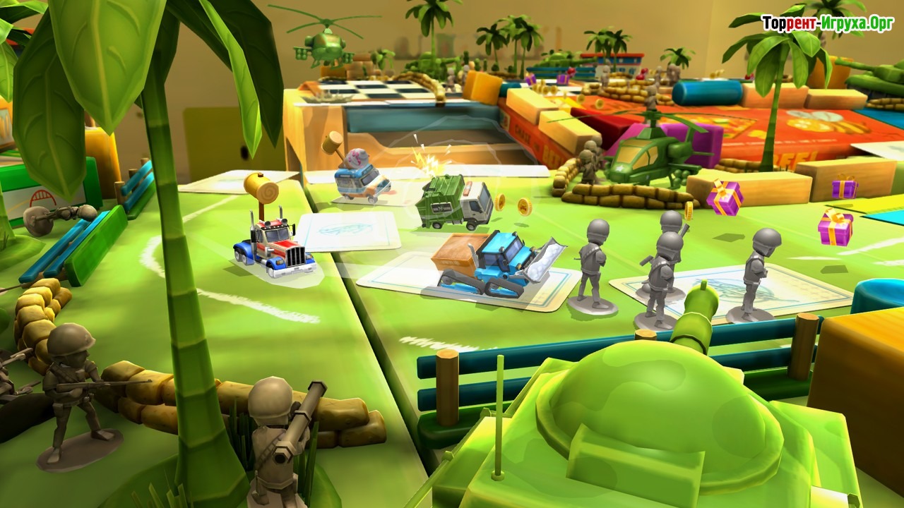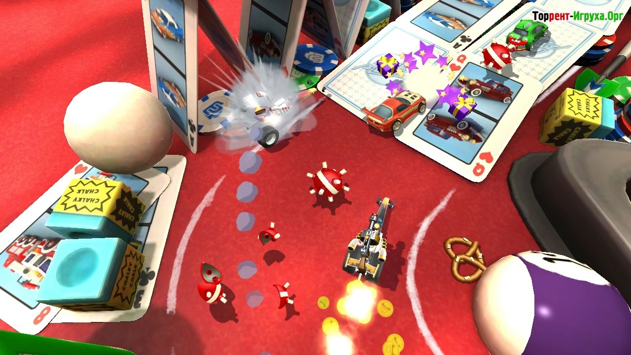 Toybox Turbos — это яркая и динамичная настольная игра от разработчика Codemasters, выпущенная в 2014 году. Вас ждет мир с красочными трассами, где можно наслаждаться захватывающими гонками и улучшать свои миниатюрные автомобили. Игра сочетает в себе напряжённые испытания и возможность разнообразного прохождения, делая каждую сессию увлекательной.
