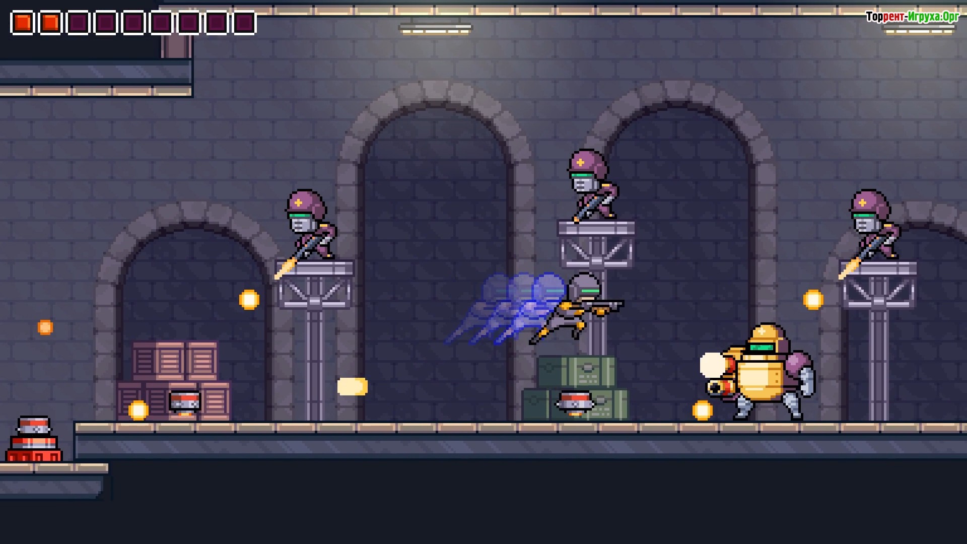 Предлагая простоту в управлении и захватывающий геймплей, Omega Strike сохраняет атмосферу классической пиксельной графики и звукового оформления, которые усиливают погружение в игровой мир. Это отличный выбор для тех, кто хочет окунуться в историю платформенных игр и насладиться ярким сочетанием экшена с элементами bullet-hell.