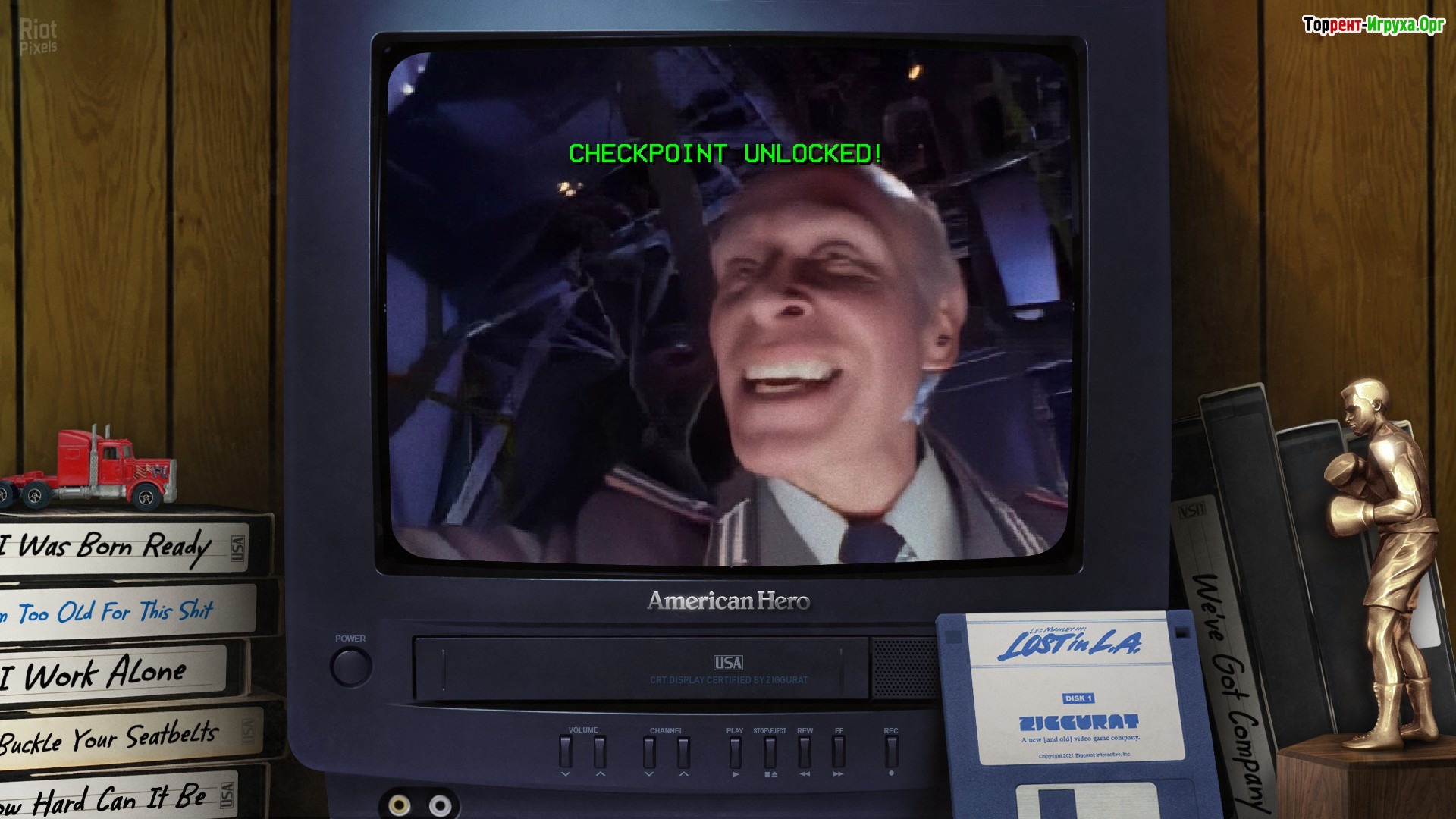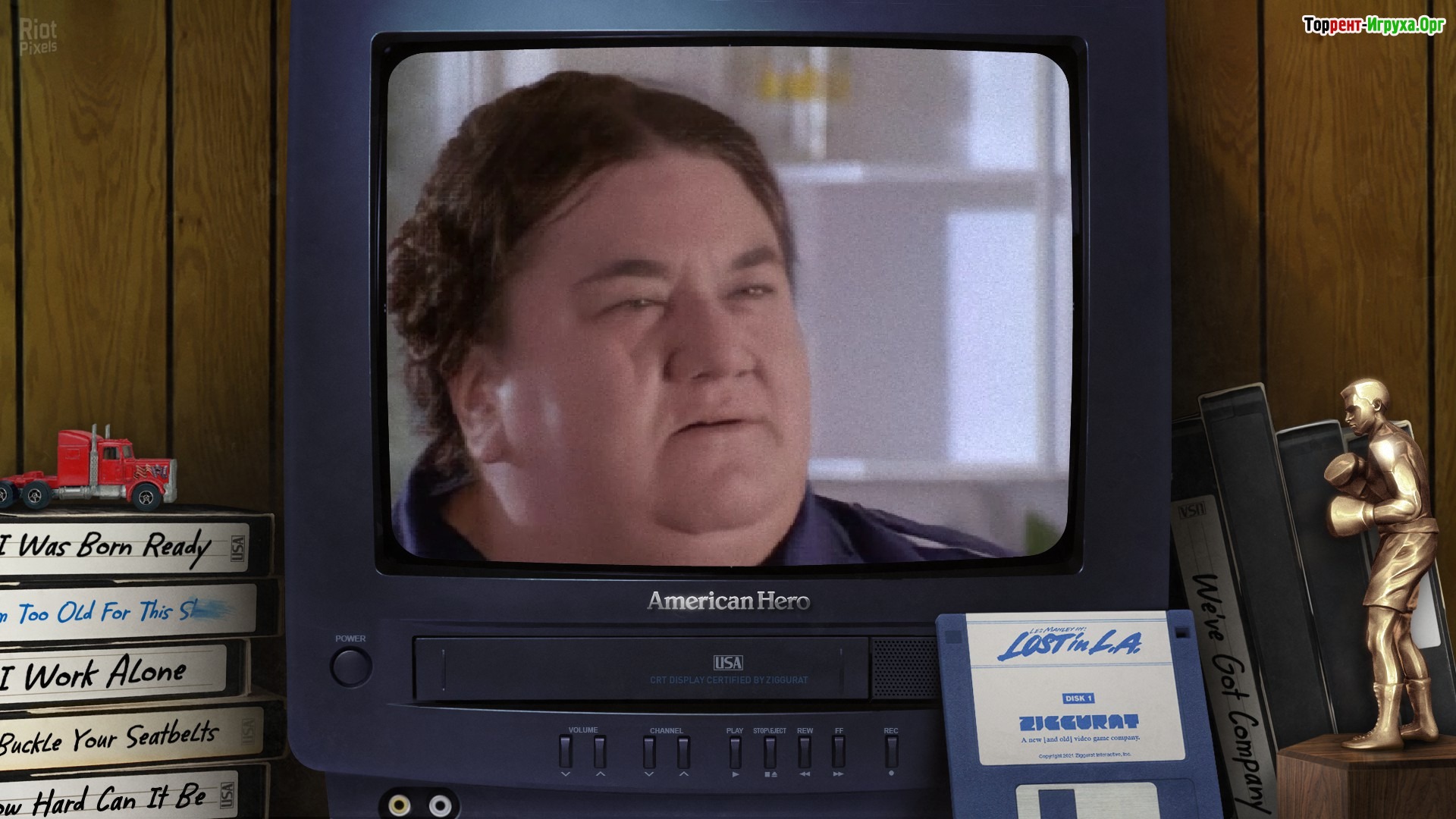 American Hero — динамичный интерактивный боевик в стиле 90-х, разработанный Empty Clip Studios в 2021 году. Игра выделяется карикатурным изображением злодеев, напряжёнными перестрелками и элементами соблазнения, создавая атмосферу классического FMV-игрового опыта. Главным героем выступает Тимоти Боттомс, который воплощает офицера разведки в отставке по имени Джек. Его миссия — остановить вирусолога Крюгера, намеревающегося заразить канализацию Лос-Анджелеса опасным вирусом.