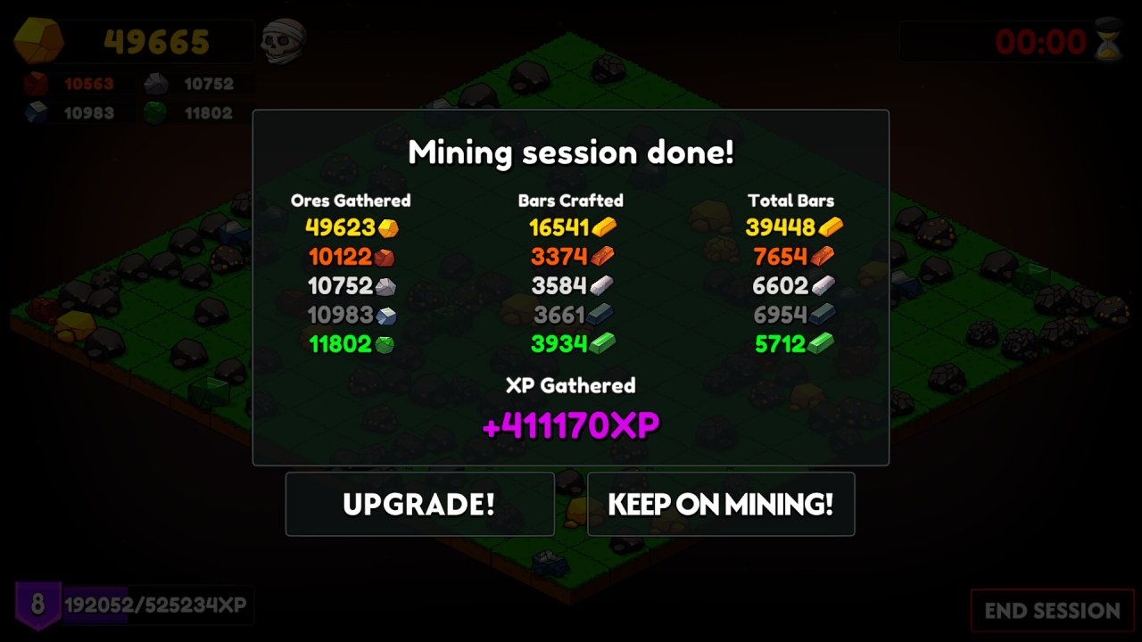 В игре "Keep on Mining!" вам предстоит взять на себя роль шахтёра, вооружённого лишь обычной киркой и имеющего в распоряжении небольшую шахту. Основное внимание в игре уделяется гармонии между простотой и глубиной игрового процесса. По мере продвижения вы открываете доступ к новым инструментам, талантам и ресурсам, что делает добычу всё более увлекательной и сложной. При этом вам нужно будет делать осознанные выборы в развитии.