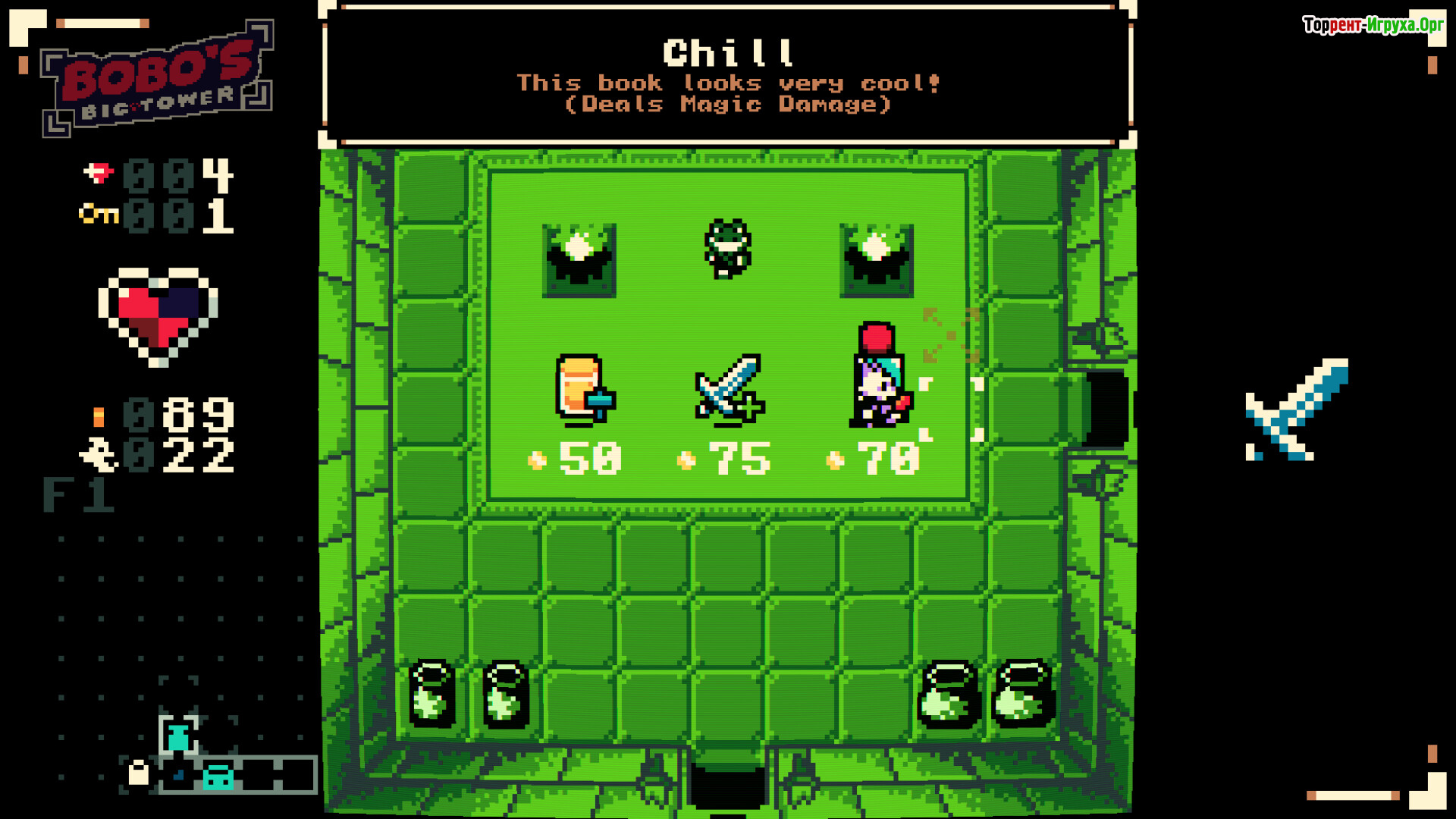 Bobo's Big Tower выделяется процедурно генерируемыми этажами, что приносит свежесть в каждый новый забег. Разнообразие персонажей с уникальными историями и множество модификаторов расширяют игровые возможности. Всё это дополнено очаровательным ретро-стилем графики, вдохновлённым эстетикой GameBoy Color, создавая по-настоящему ностальгическую и увлекательную атмосферу.