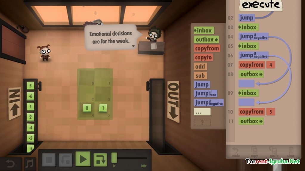 Игровой процесс начинается с двух простых команд, но по мере продвижения по карьерной лестнице игрок получает возможность использовать до 11 различных инструкций. Такой набор достаточно мощен для создания разнообразных компьютерных алгоритмов, что делает игру привлекательной для тех, кто хочет развивать логическое мышление и практические навыки программирования. Human Resource Machine идеально подходит для всех, кто стремится почувствовать себя разработчиком и разобраться в основах вычислительных процессов.