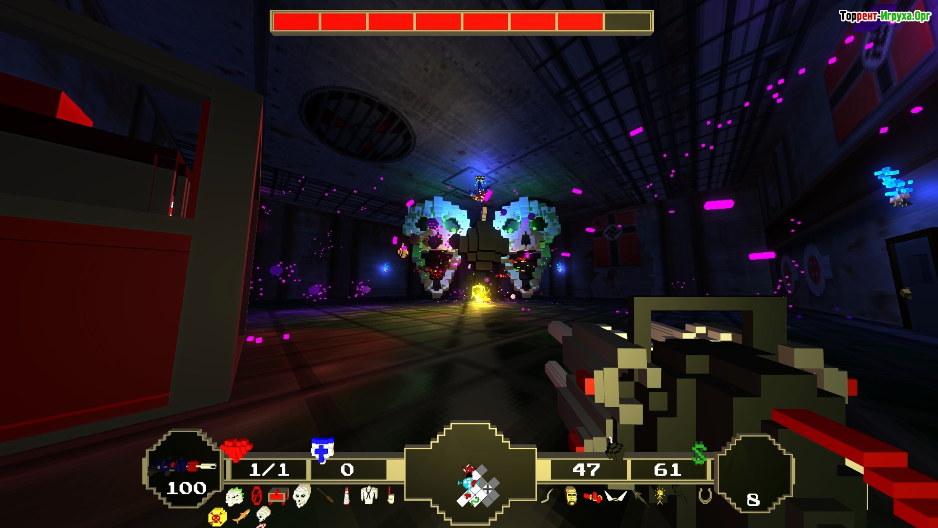 В игре представлено около 40 типов врагов, каждый со своими уникальными способностями, что позволяет проверить реакцию и навыки игрока. Также присутствует система покупок, где можно приобрести аптечки, броню, мощное оружие и другие предметы для усиления вашего персонажа, что делает игровой процесс ещё более разнообразным и увлекательным.