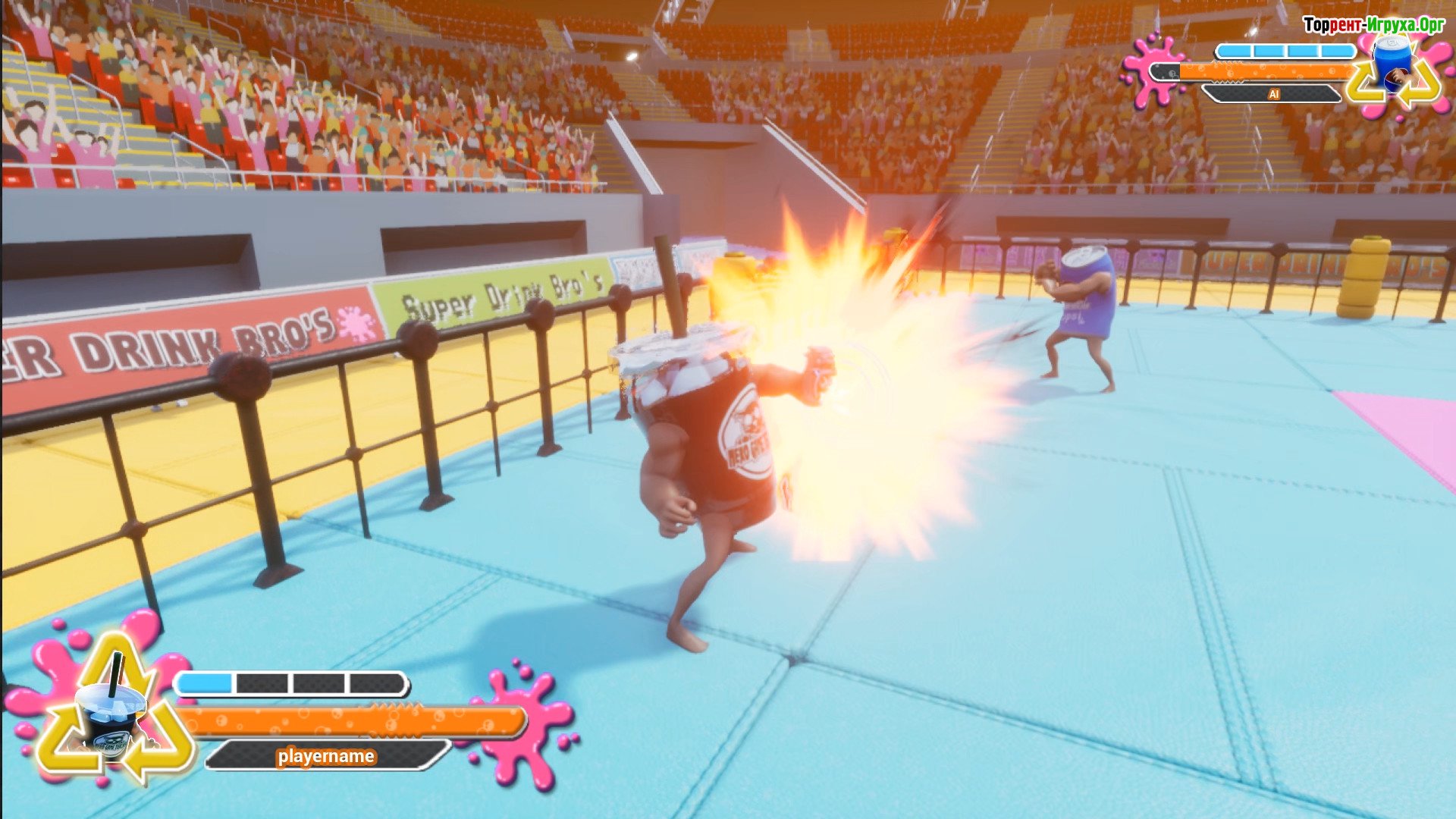 SUPER DRINK BROS — это оригинальный файтинг от разработчика nekogameteacher, вышедший в 2020 году, в котором главные герои — необычные бойцы в виде банок из-под газировки. Каждая такая банка оснащена ногами и крепкими руками, что позволяет им вести динамичные и зрелищные сражения. Кроме того, участвуют в бойне и обычные кружки, придавая сценам ещё больше разнообразия. Игра требует от игрока умения комбинировать удары и внимательности, чтобы полностью раскрыть боевой потенциал своих персонажей и получить удовольствие от игрового процесса.