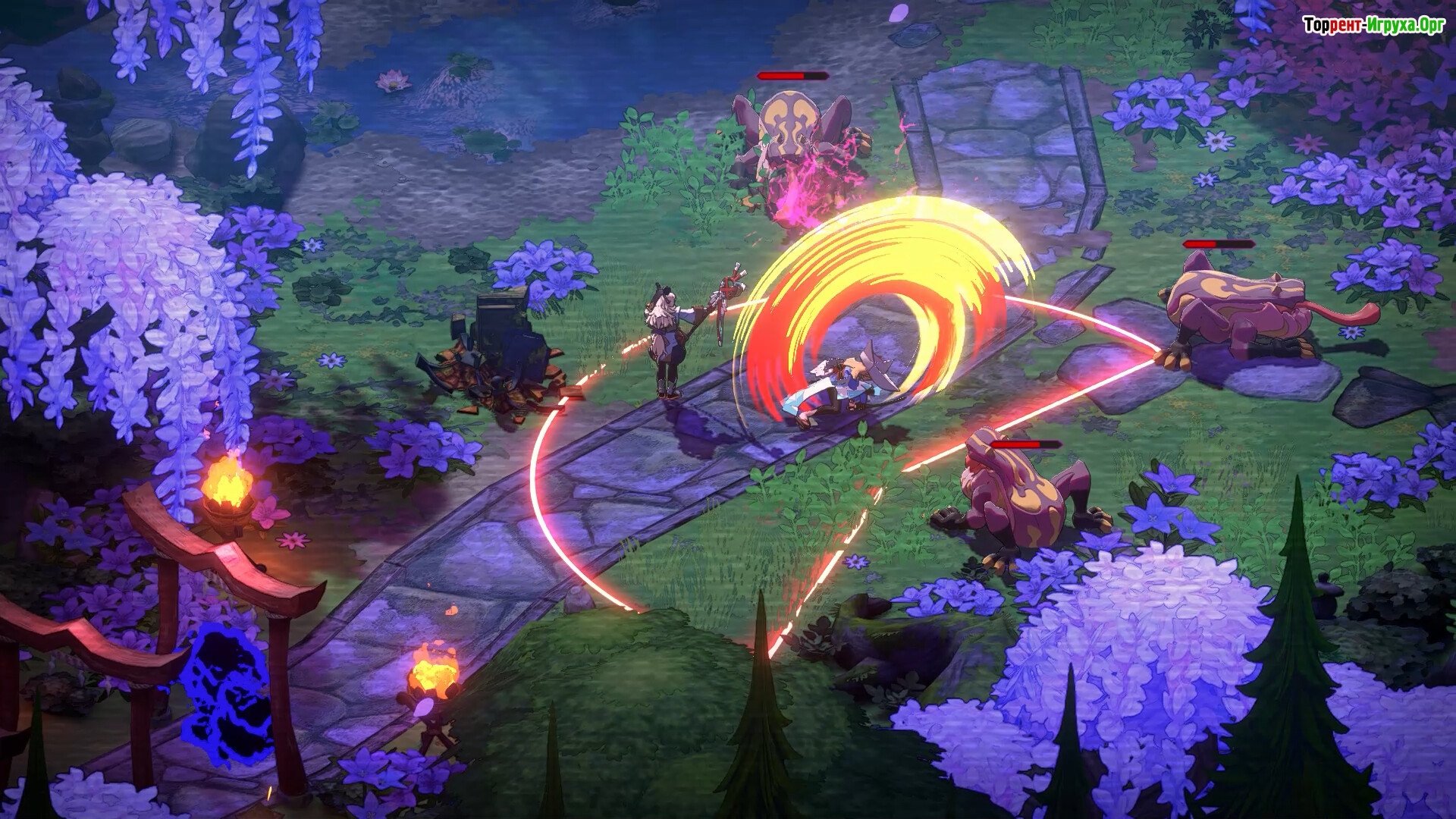 Вы управляете Товой, жрицей деревни Синдзю, и её верными стражами, чтобы противостоять зловещему Магацу. Каждое путешествие по подземельям уникально: столкновения с врагами, испытания и добыча постоянно меняются, создавая динамичный игровой процесс.