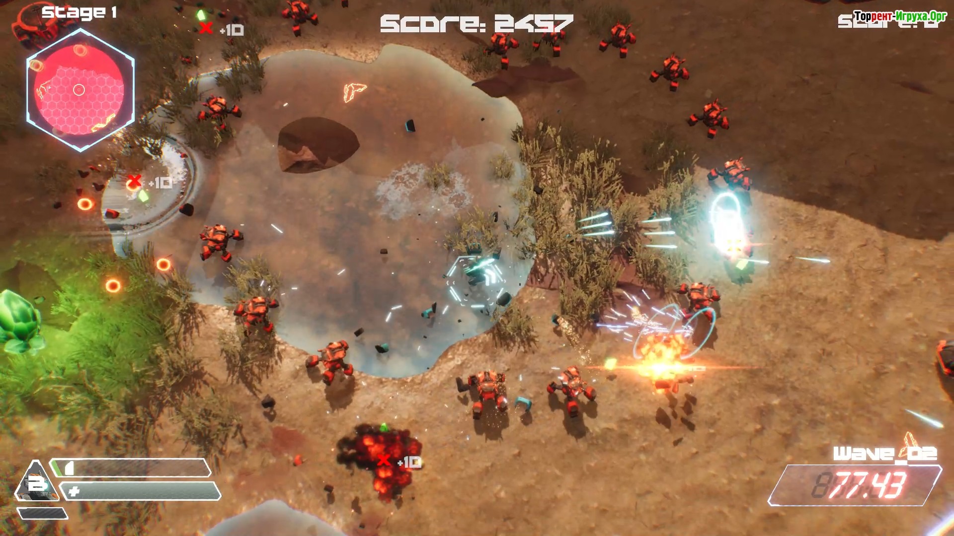 В Twin Ruin враги атакуют волнами, и для выживания необходимо быстро адаптироваться к их тактике. Главный герой оснащен футуристическим костюмом и энергетическим оружием с изменяемой полярностью, что добавляет глубины стратегии. Противники также применяют механики полярности, поэтому важно грамотно переключать энергию, чтобы накапливать силу и одолеть самых мощных врагов.
