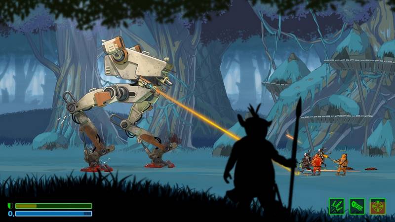 Когда энергетический заряд вашей машины иссякнет, вы сможете использовать альтернативные средства для борьбы. Например, можно будет применять специальные кибернетические ноги, чтобы подавлять врагов. Игра демонстрирует интуитивно понятный геймплей и отличную графику, что делает процесс игры увлекательным и затягивающим. Удачи вам в боевых действиях! Кто станет вашим союзником в этой ситуации: колонисты или аборигены?