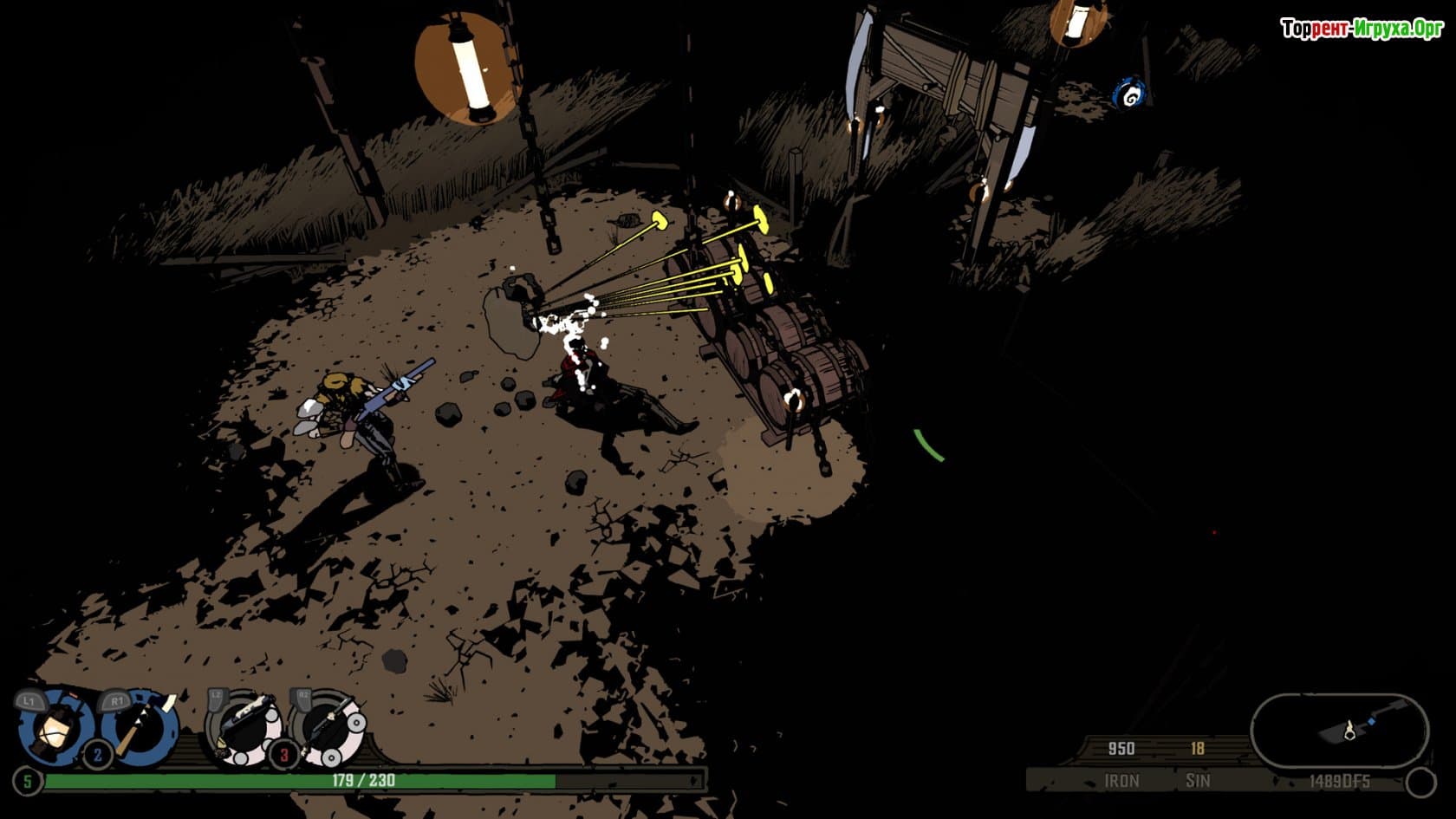 Игра West of Dead от разработчика Upstream Arcade, вышедшая в 2020 году, представляет собой традиционный шутер с видом сверху вниз, выдержанный в классическом духе жанра. Действие разворачивается в мрачном городе под названием «Чистилище» в 1888 году. Главный герой — покойник Мейсон, оказавшийся в мире, полном смерти и нечестивых созданий: ведьм, мародеров, вендиго и других монстров. Вспоминая лишь образ человека в черном, он отправляется в опасное путешествие по жутким улицам этого места.