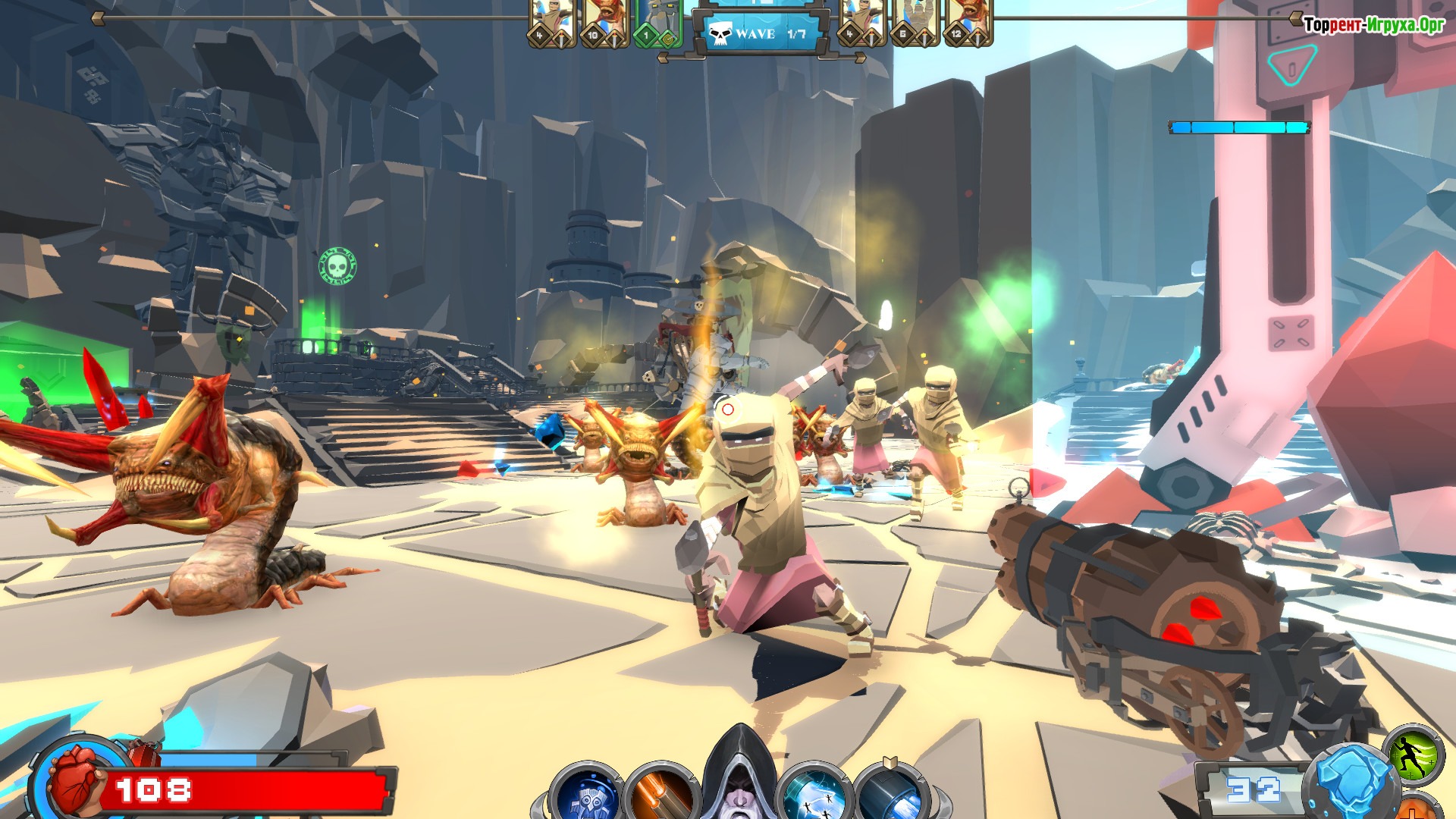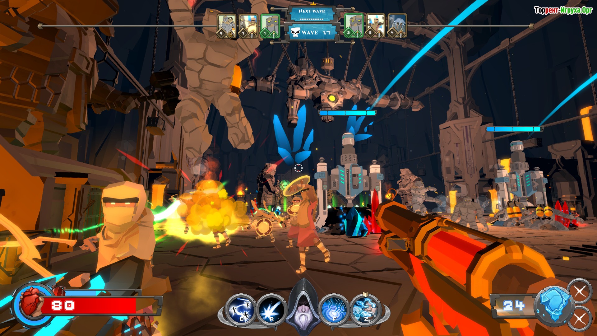 Dwarfenstein — это уникальная казуальная игра, объединившая элементы шутера и Tower Defense, разработанная Алексом Дженковым в 2022 году. В этой динамичной игре вы берёте под контроль героя, который сражается с ордами врагов и строит разнообразные башни для защиты своего города. Собирать кристаллы, накапливать опыт и усиливать своего персонажа — главные задачи в процессе прохождения.
