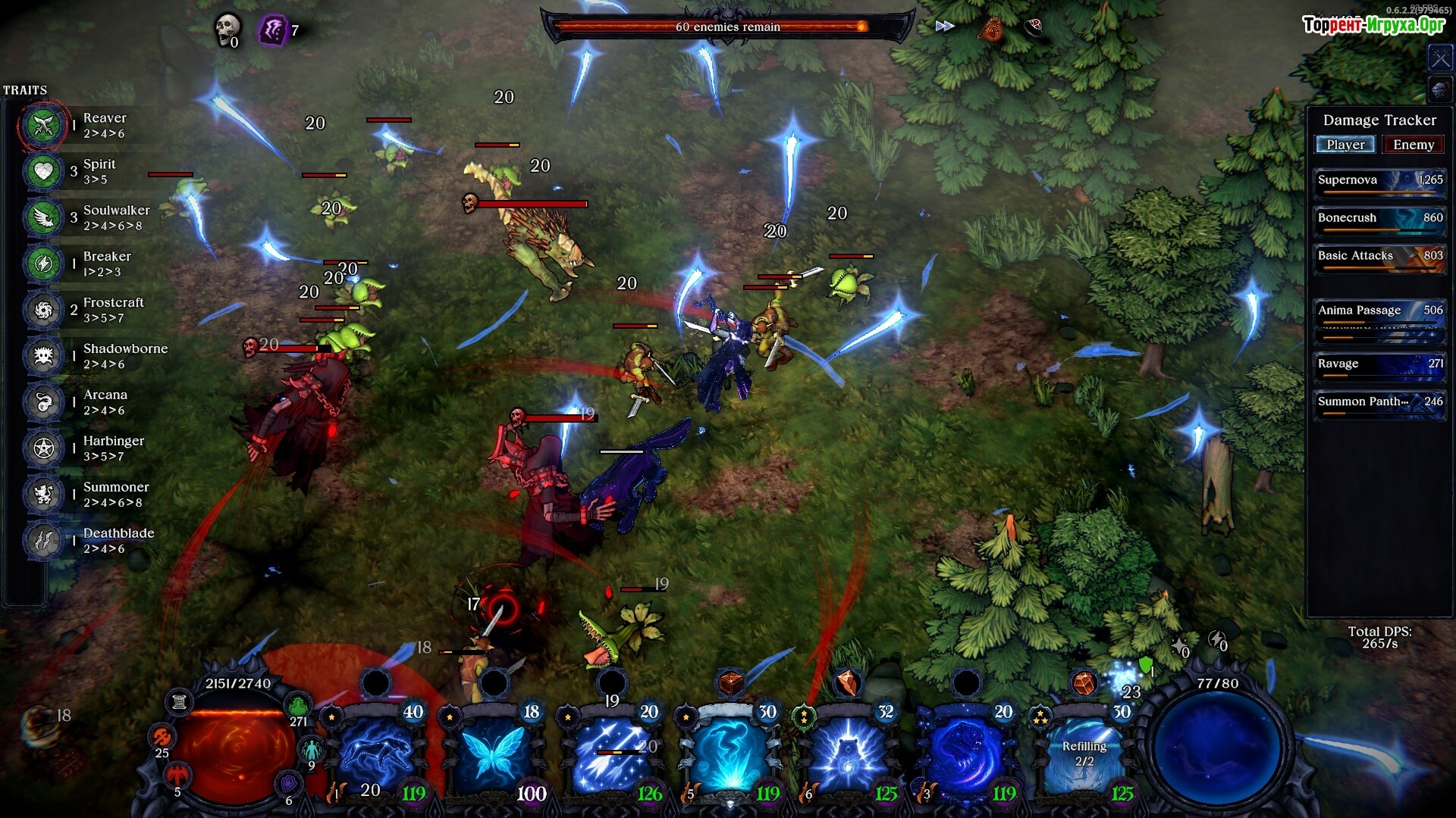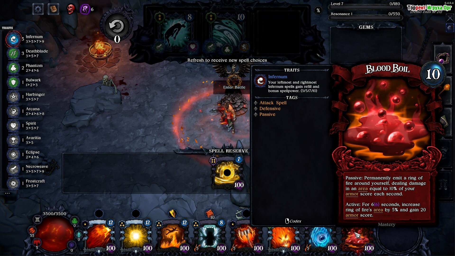 Ваша сборка заклинаний — это единственная возможность преуспеть в боях. Перед каждым раундом вам предстоит выбрать и усилить заклинания чертами, а также правильно расположить их в последовательности. После начала боя вы больше не управляете действиями, поэтому продуманная расстановка и комбинации определяют исход каждого сражения.