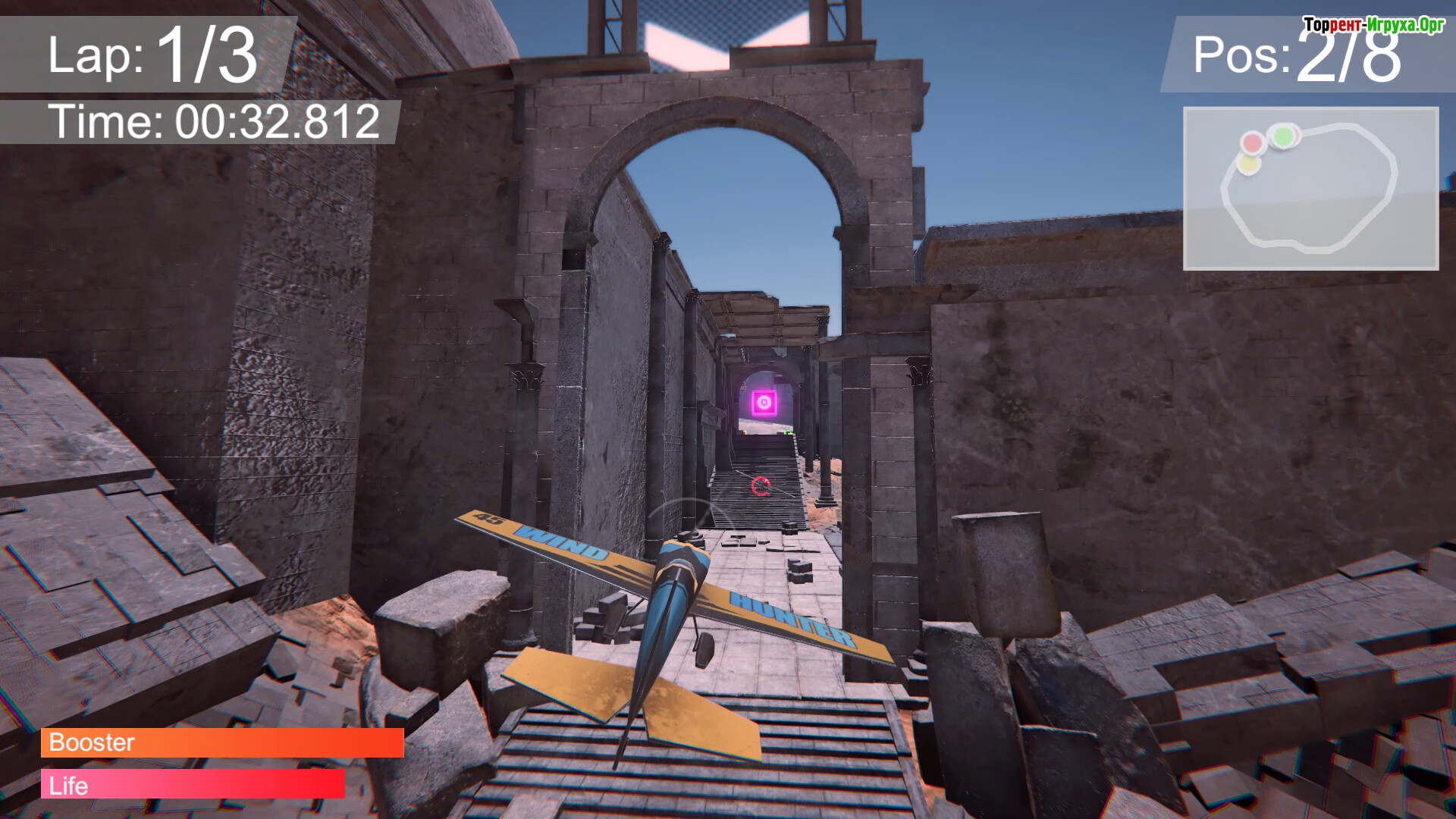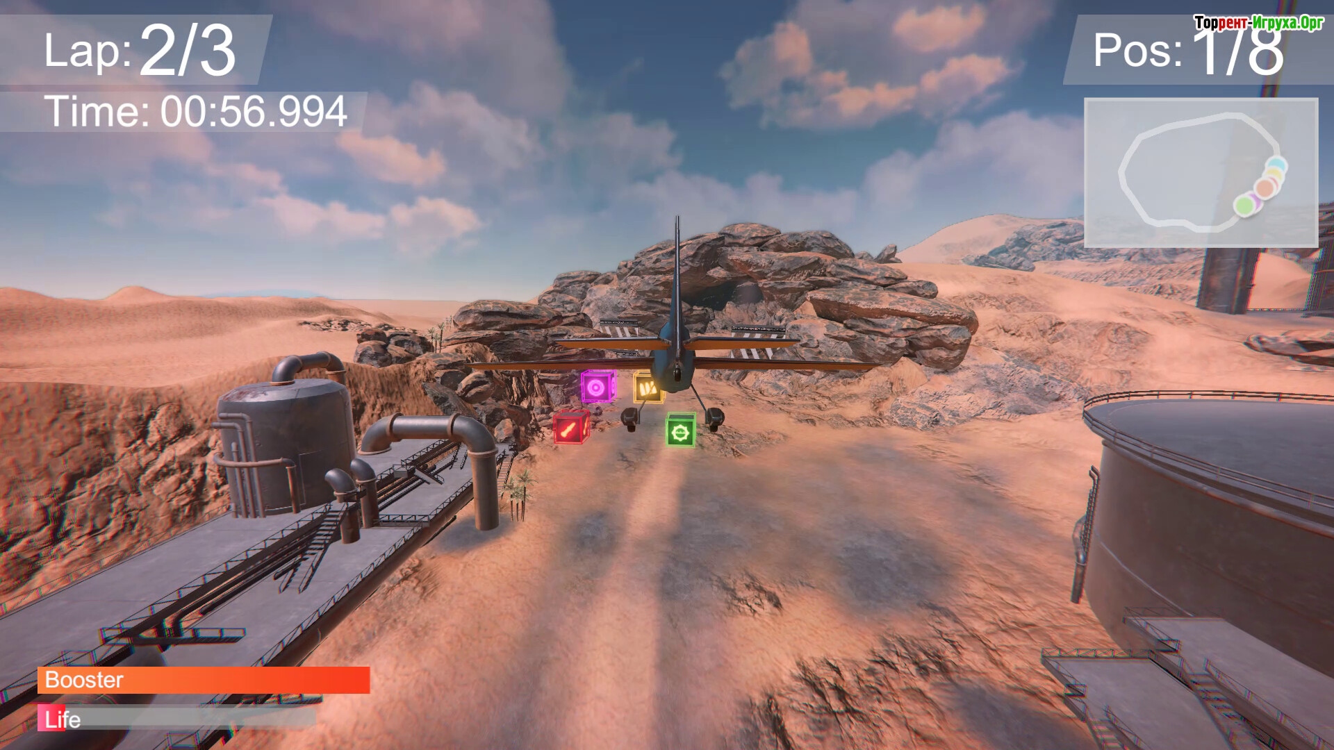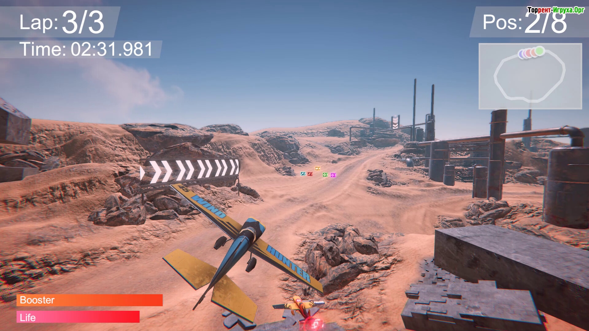 Гонки включают разнообразные трассы — от тропических островов и больших городов до ледяных пустошей и жарких пустынь. Навигация и выбор оптимальных маршрутов становятся ключевыми, а кастомизация самолётов и локальный мультиплеер делают каждую гонку особенной и насыщенной соперничеством.
