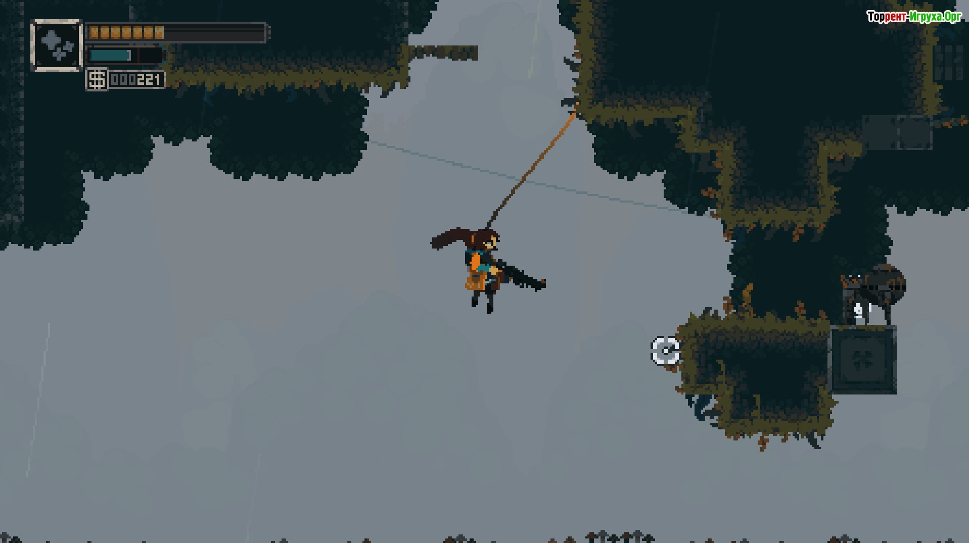 Уникальная механика крюка основана на продвинутой физике, что придаёт ему необычное применение в жанре метроидвания. С его помощью можно легко прыгать через любые преграды и выполнять впечатляющие трюки, обеспечивая высокую мобильность на разнообразном ландшафте. Это значительное преимущество для исследования мира и сражений с врагами.