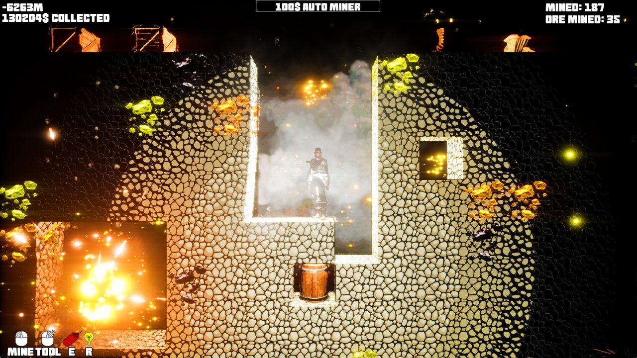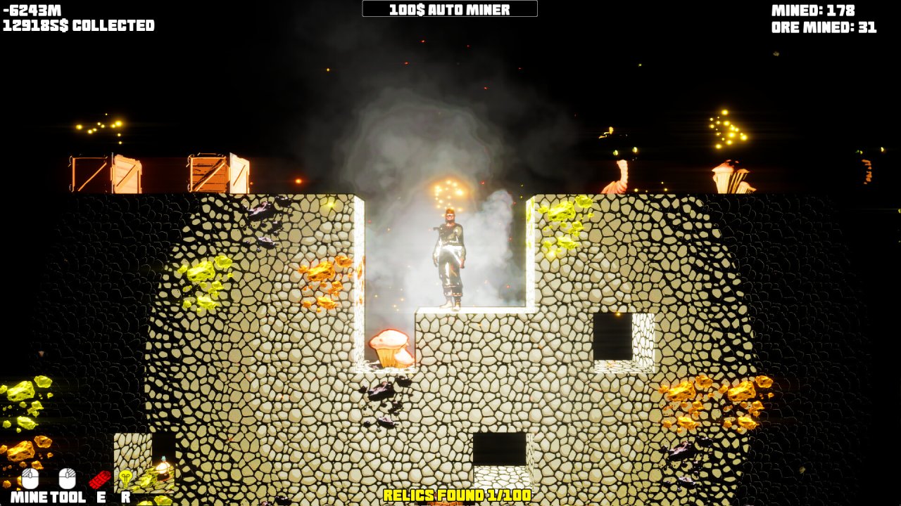 - Постоянный процесс добычи ресурсов и улучшения кирки;