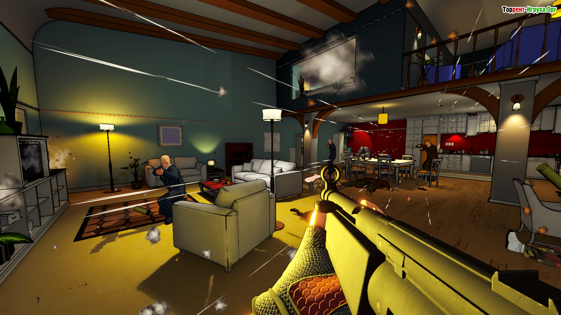 RICO London — динамичный кооперативный шутер от разработчика Ground Shatter, выпущенный в 2021 году. В этой игре вы окунетесь в напряжённые события, разворачивающиеся в Лондоне накануне Нового года. Вам предстоит взять на себя роль детектива Редферна, который оказывается в эпицентре операции по продаже оружия у основания небоскрёба. Ваша задача — вместе с напарником или в одиночку подняться по зданию, сражаясь с преступниками, поджидающими за каждым углом.