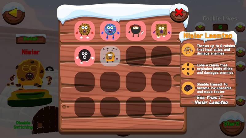 Каждый персонаж обладает тремя уникальными способностями, а играя за печеньки, вы сможете использовать мощные предметы и уникальное оружие, что добавляет дополнительные тактические элементы в игровой процесс.