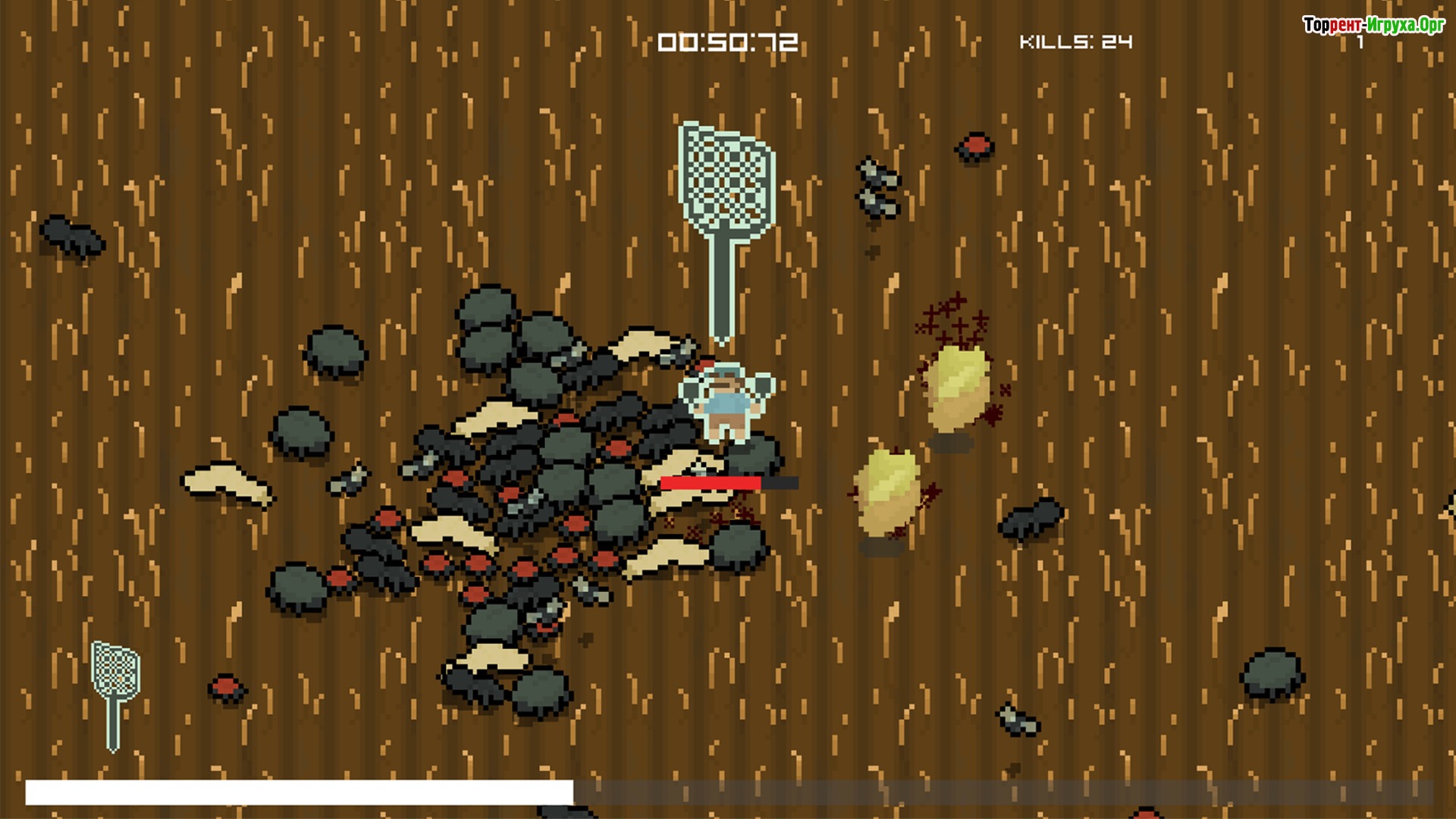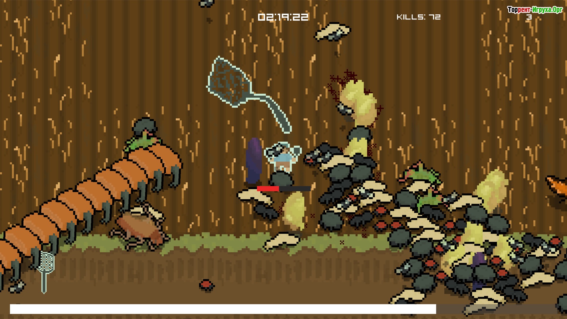 Entomophobia — это захватывающая одиночная игра от разработчика VuVuu, выпущенная в 2022 году, в которой главная цель — уничтожить максимальное количество насекомых. Вас ждут напряжённые сражения с мини-боссами и крупными противниками, а также возможность постоянно улучшать персонажа и оружие для повышения эффективности в битвах.