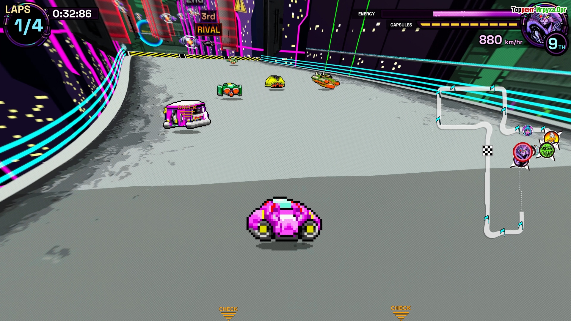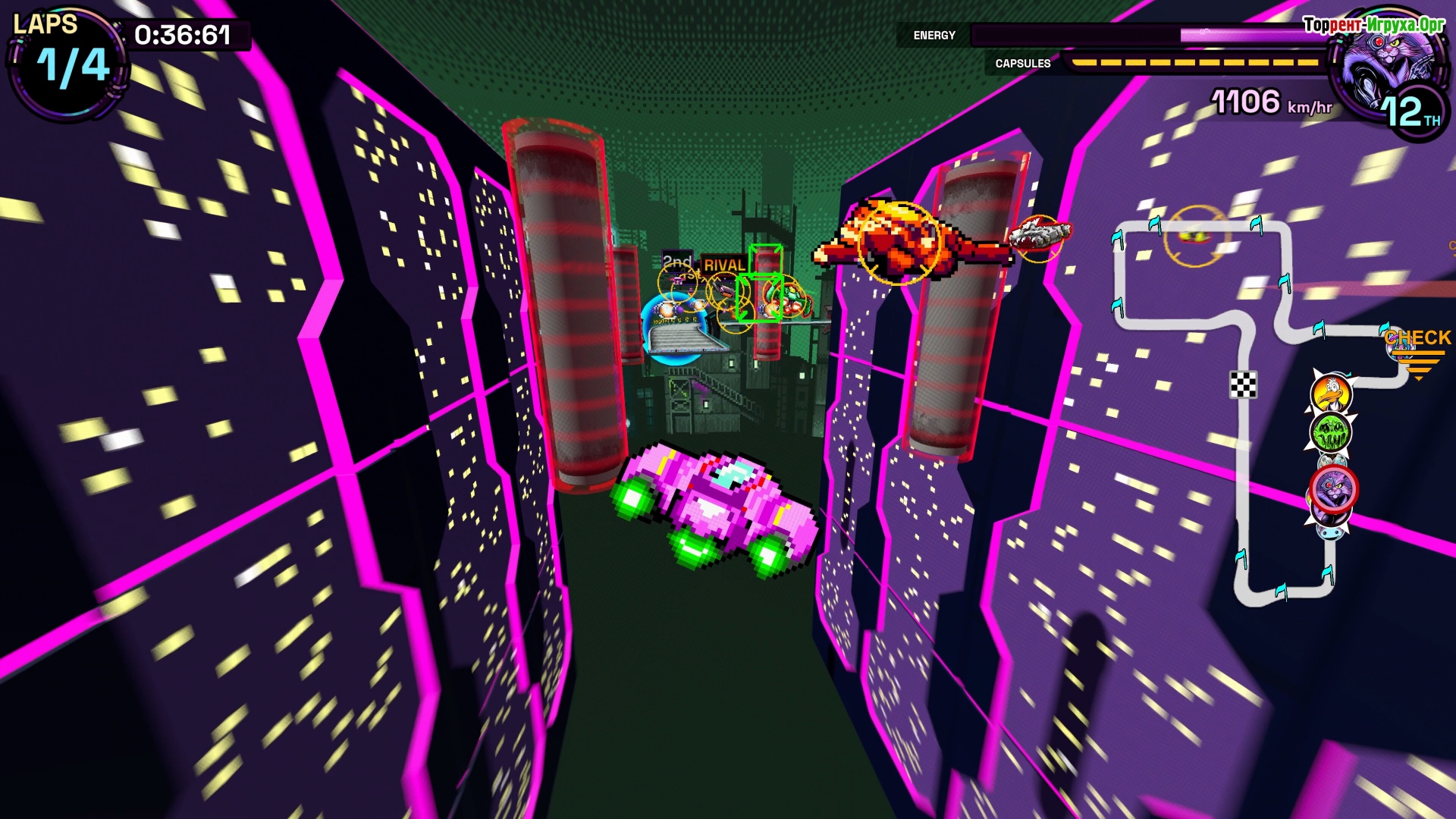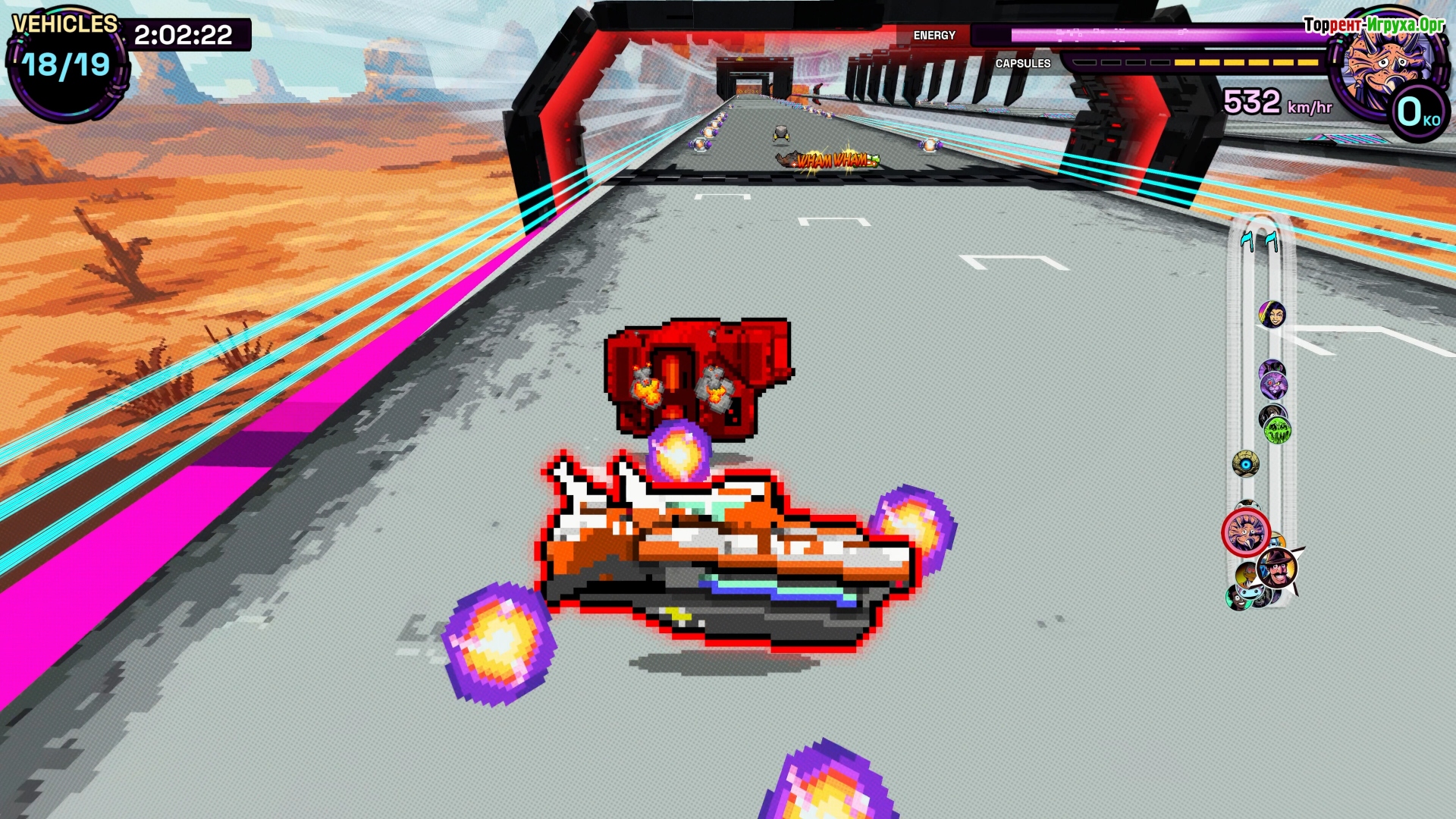 В игре гонка превращается в настоящую битву, где вы управляете мощным ударом, лавируя между врагами и опасностями. Используйте импульсный толчок, контролируйте энергию между прыжками, блоками и выстрелами, чтобы сохранять преимущество в условиях полного хаоса. Это не просто гонка — это борьба за выживание на предельной скорости.