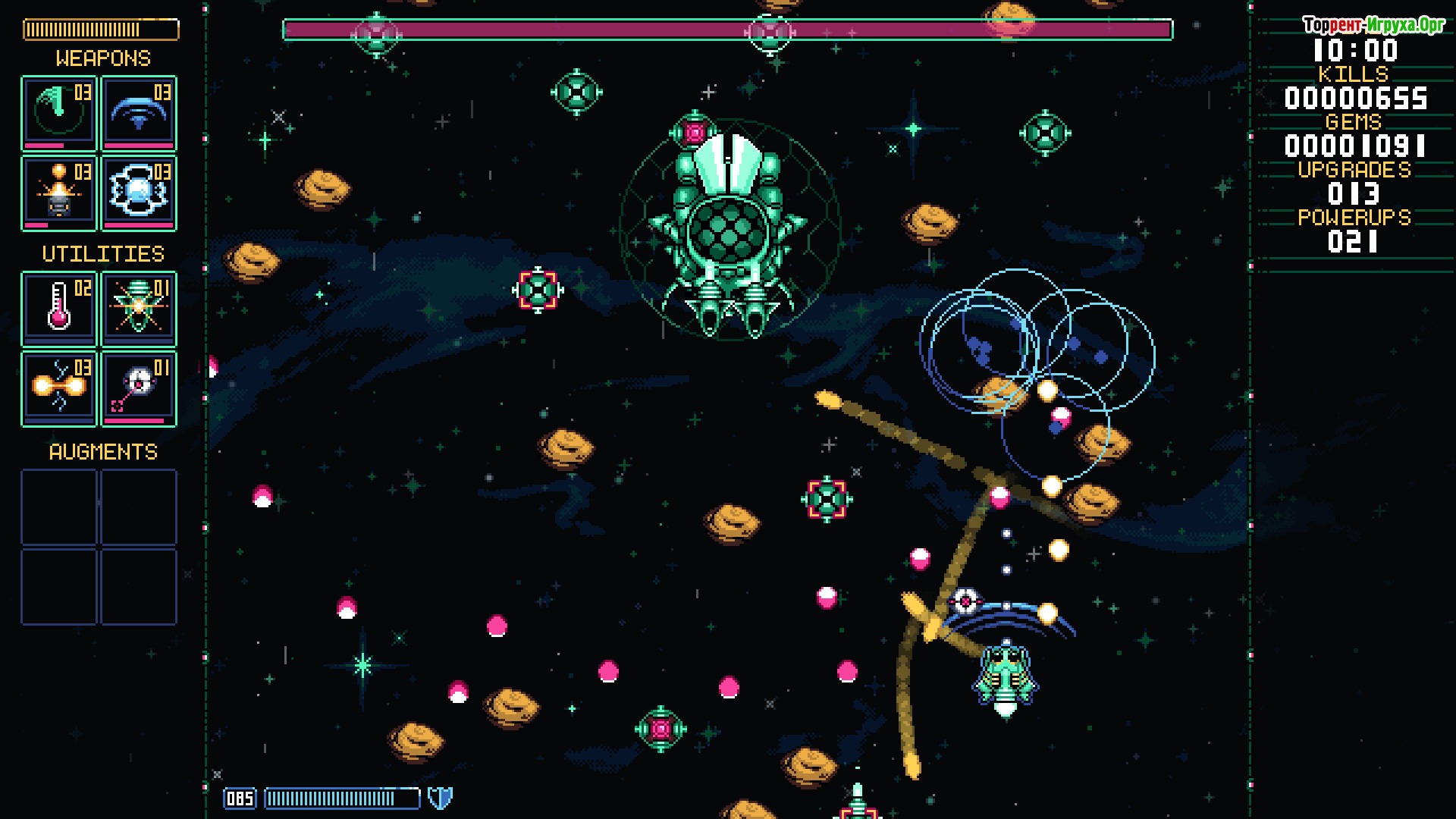 В ходе приключений вы сможете открыть 16 уникальных улучшений, выбрать одного из трех доступных пилотов и активировать три оригинальных бонуса. Противостоять придется девяти разнообразным врагам и мощному боссу, способному к эволюции, что добавляет динамики и вызова в игровой процесс.
