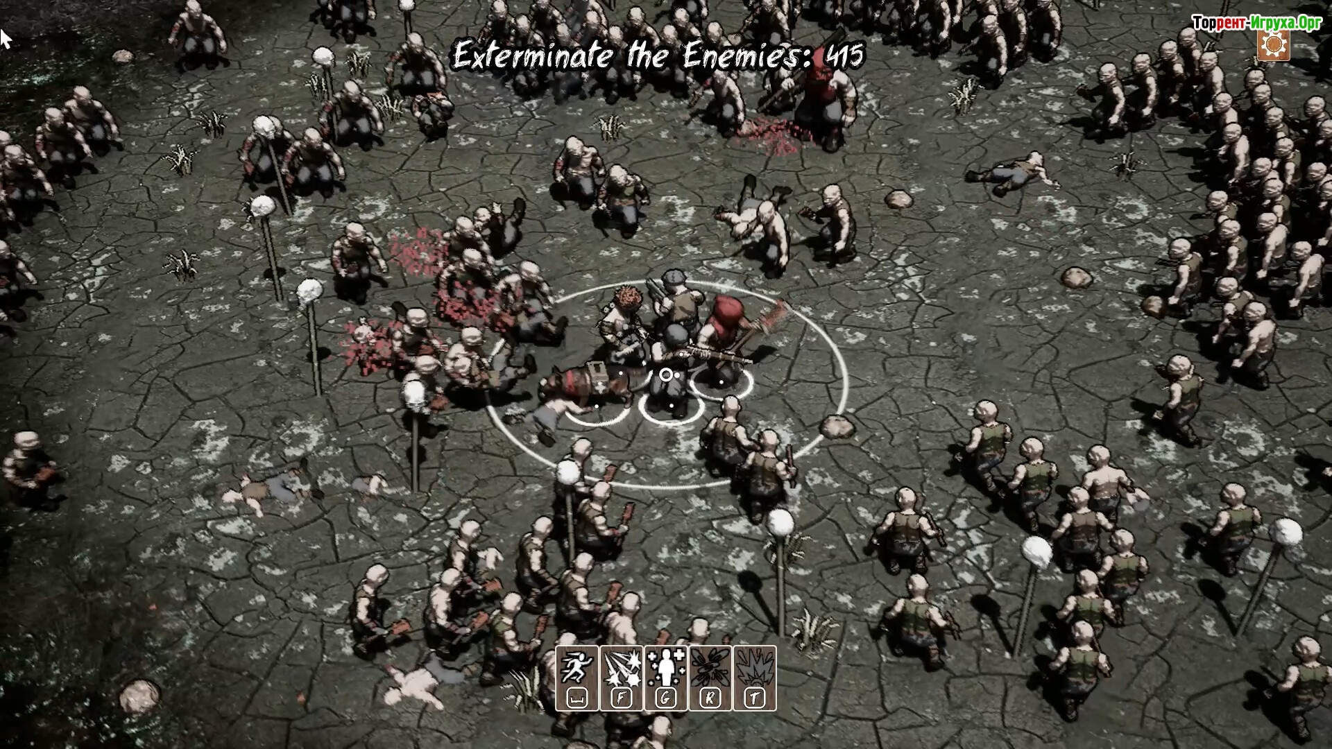 Игровой процесс предлагает разнообразные испытания на арене, где вы должны не просто побеждать врагов, но и разрабатывать стратегии для каждого члена команды. Возможность использовать бонусы или отступать в критических ситуациях добавляет глубину в управление вашей бандой, делая Rusty Dudes увлекательной стратегией о лидерстве и выживании.