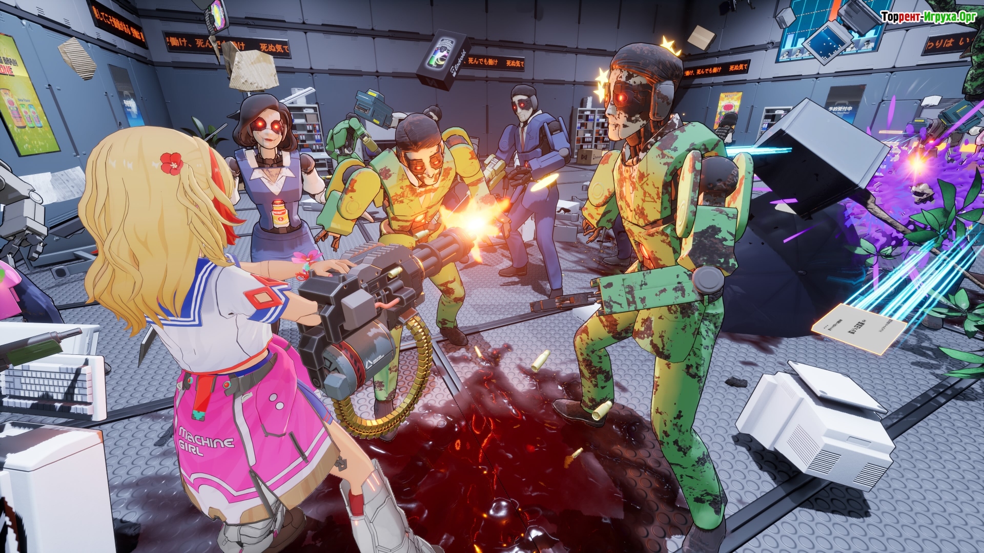 Металлическое тело героини объединяет в себе смертоносное оружие — от клинков до пулемётов, а нервная система усилена технологиями. Пробиваясь сквозь офисные просторы корпорации Meternal Jobz, она разрушает стены из стали и стекла. Её оппоненты — бывшие сотрудники, давно ставшие лишь программируемыми машинами, которые не прекращают труд даже после смерти.