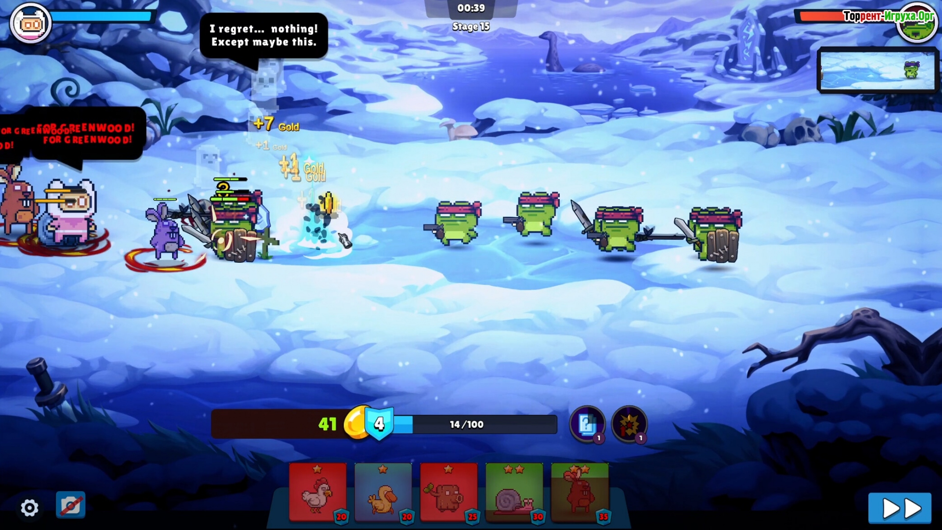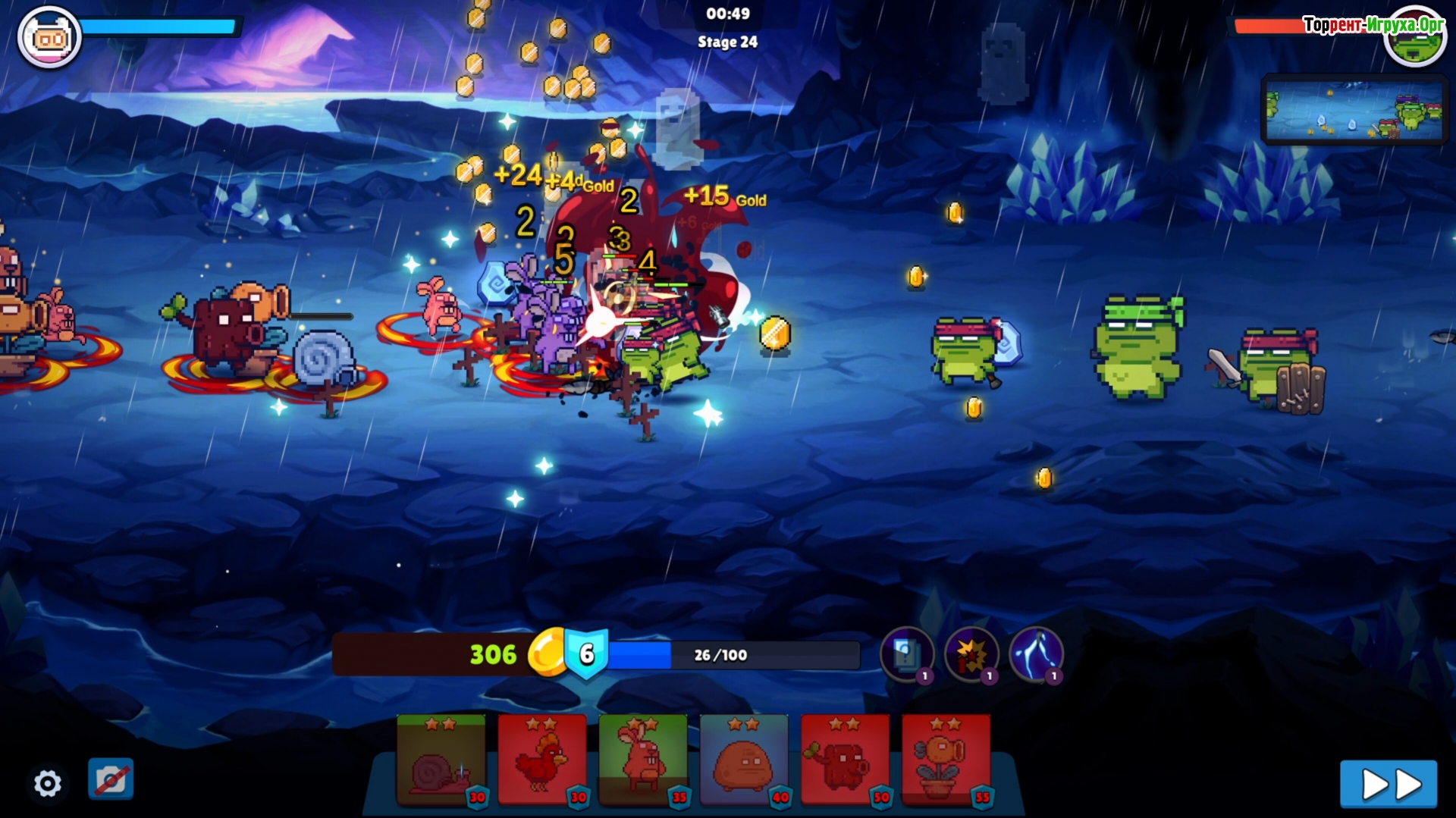 В игре предусмотрена система глобальных улучшений, которая позволяет менять тактику и усиливать армию. Каждая пятая волна приносит новых лягушек, а к концу уровней предстоит сразиться с двумя мощными боссами, которые проверят вашу способность справляться с возрастающими угрозами.