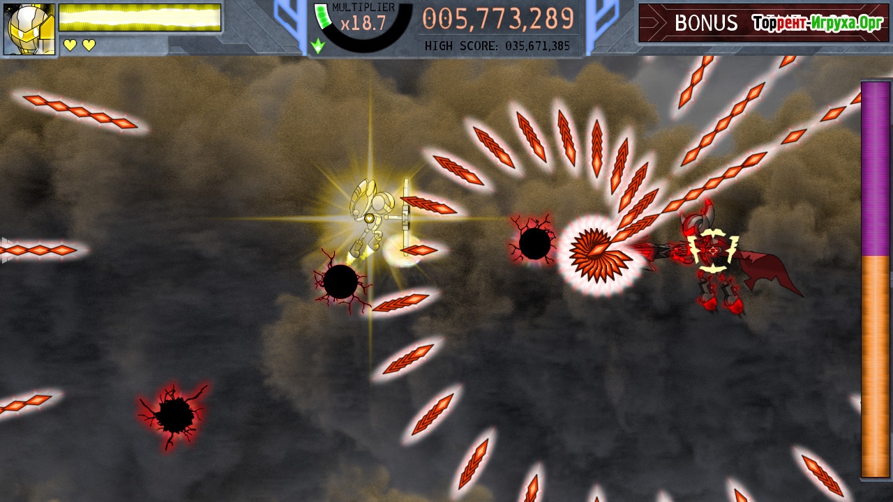 Вы будете использовать особые приемы уклонения, отражения и преобразования пуль, чтобы повысить эффективность своих атак и добиться максимального результата. Каждый из пяти героев обладает двумя специальными выстрелами: один служит для защиты и разбивания вражеских снарядов, а второй наносит мощный урон и значительно увеличивает ваш счёт, что добавляет элемент риска и стратегии в процесс игры.