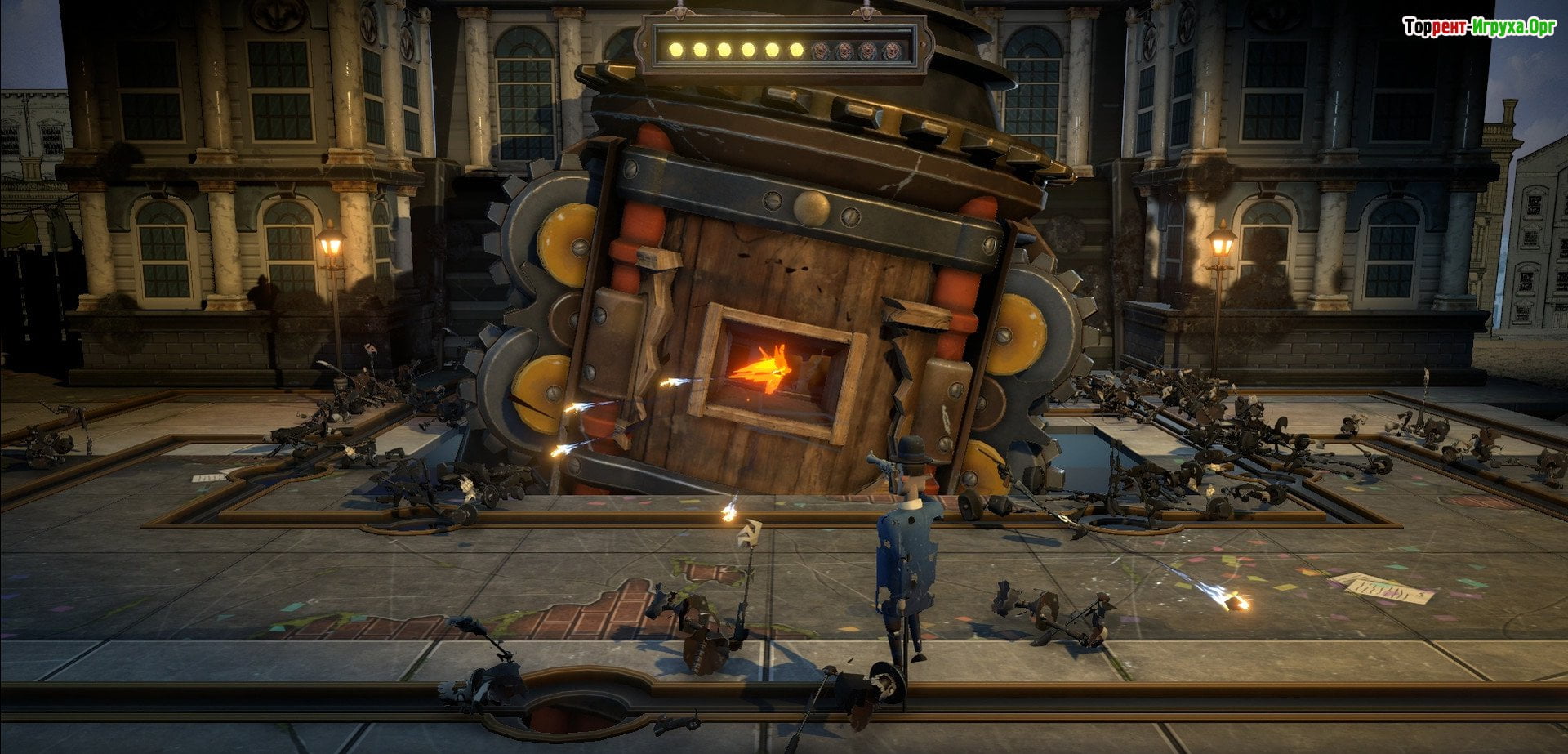 Игра Bartlow's Dread Machine от разработчиков Beep Games, Inc. и Tribetoy, выпущенная в 2020 году, приглашает вас отправиться в захватывающее приключение по Нью-Йорку. В роли наемника вам предстоит спасти Тедди Рузвельта, похищенного зловещими существами. Вас ждут напряжённые сражения с темными монстрами, которые не остановятся ни перед чем, чтобы уничтожить всё живое. Внимательность и осторожность станут вашими главными союзниками на этом пути.