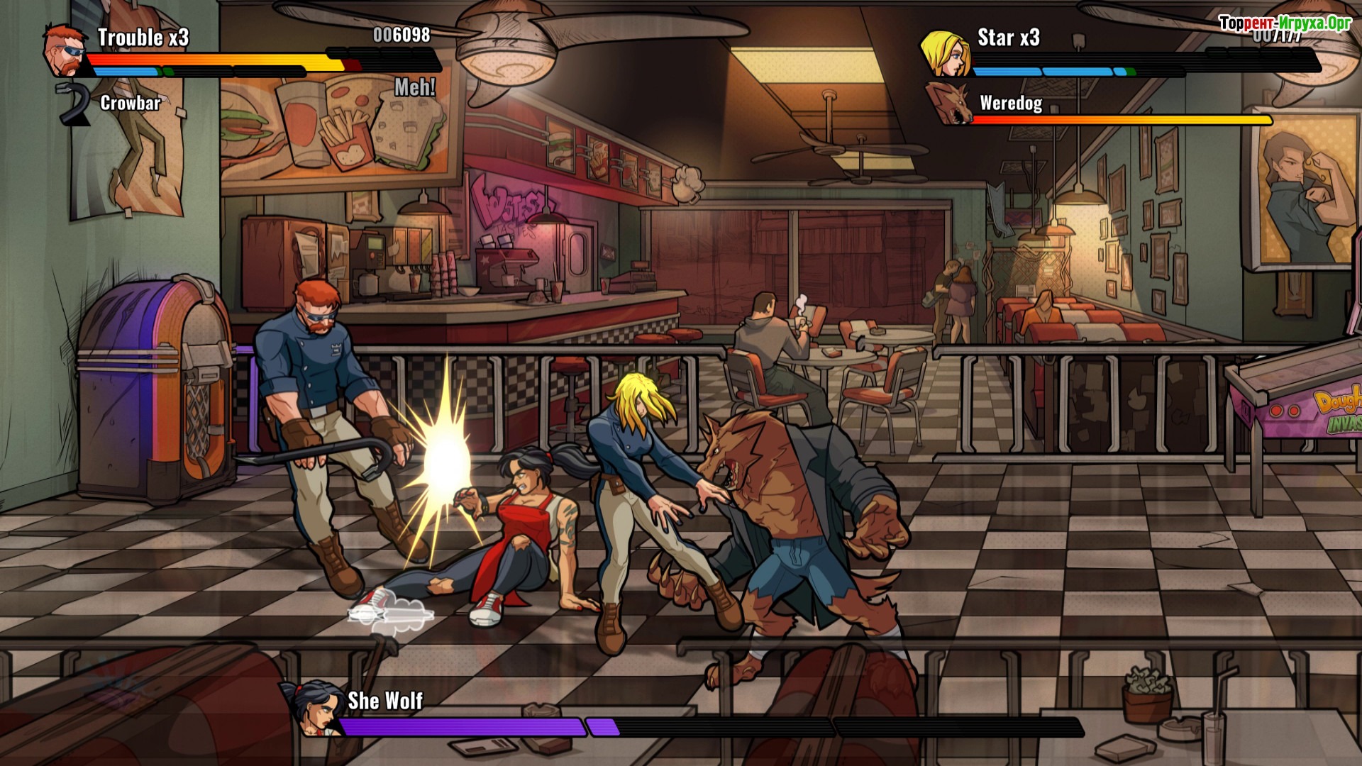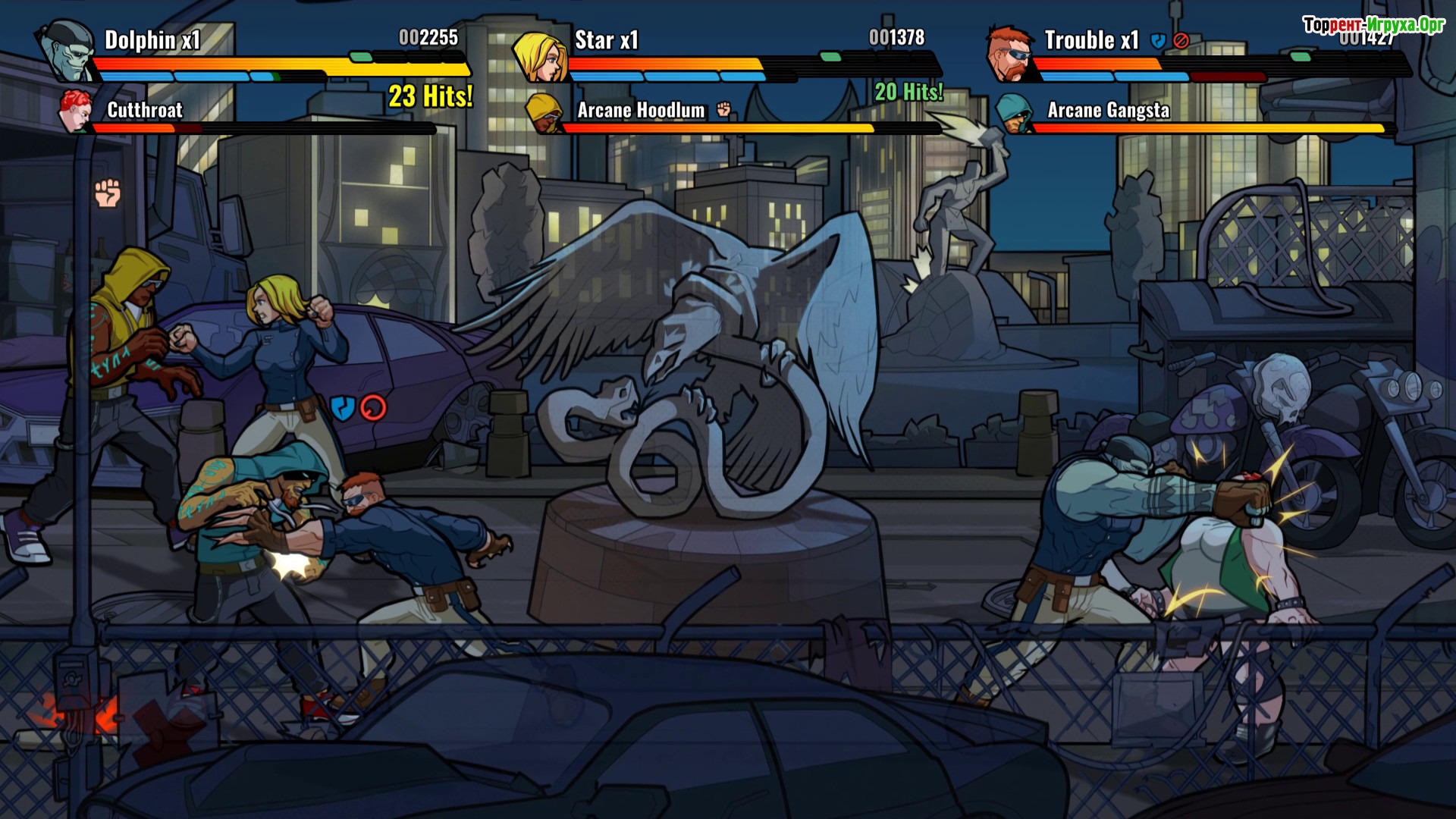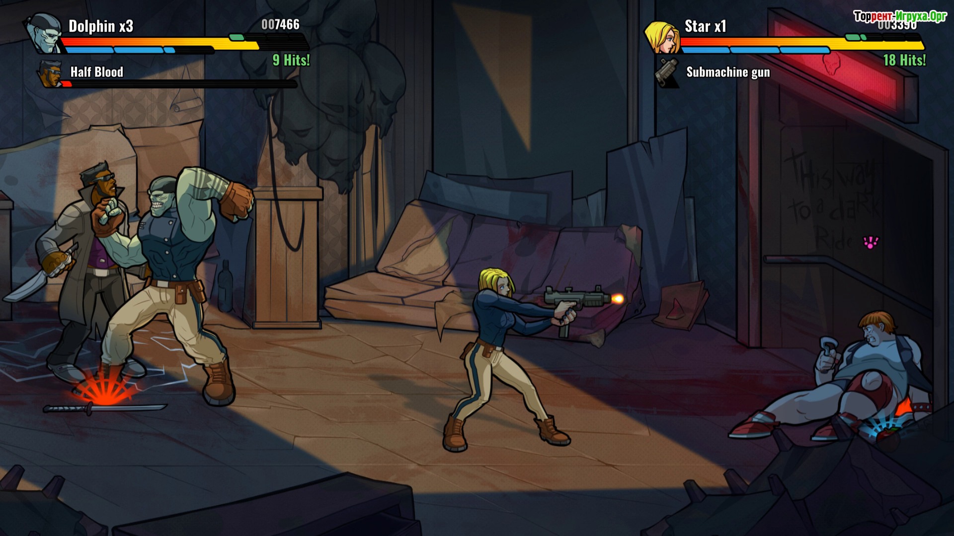 Mayhem Brawler выделяется яркой рисованной графикой, напоминающей комиксы, и большим разнообразием противников – более 30 видов врагов и 12 боссов делают каждое сражение уникальным и захватывающим. Если вы хотите насладиться насыщенными битвами и увлекательной историей, игра отлично подойдёт как для одиночного прохождения, так и для совместных боёв с товарищами.