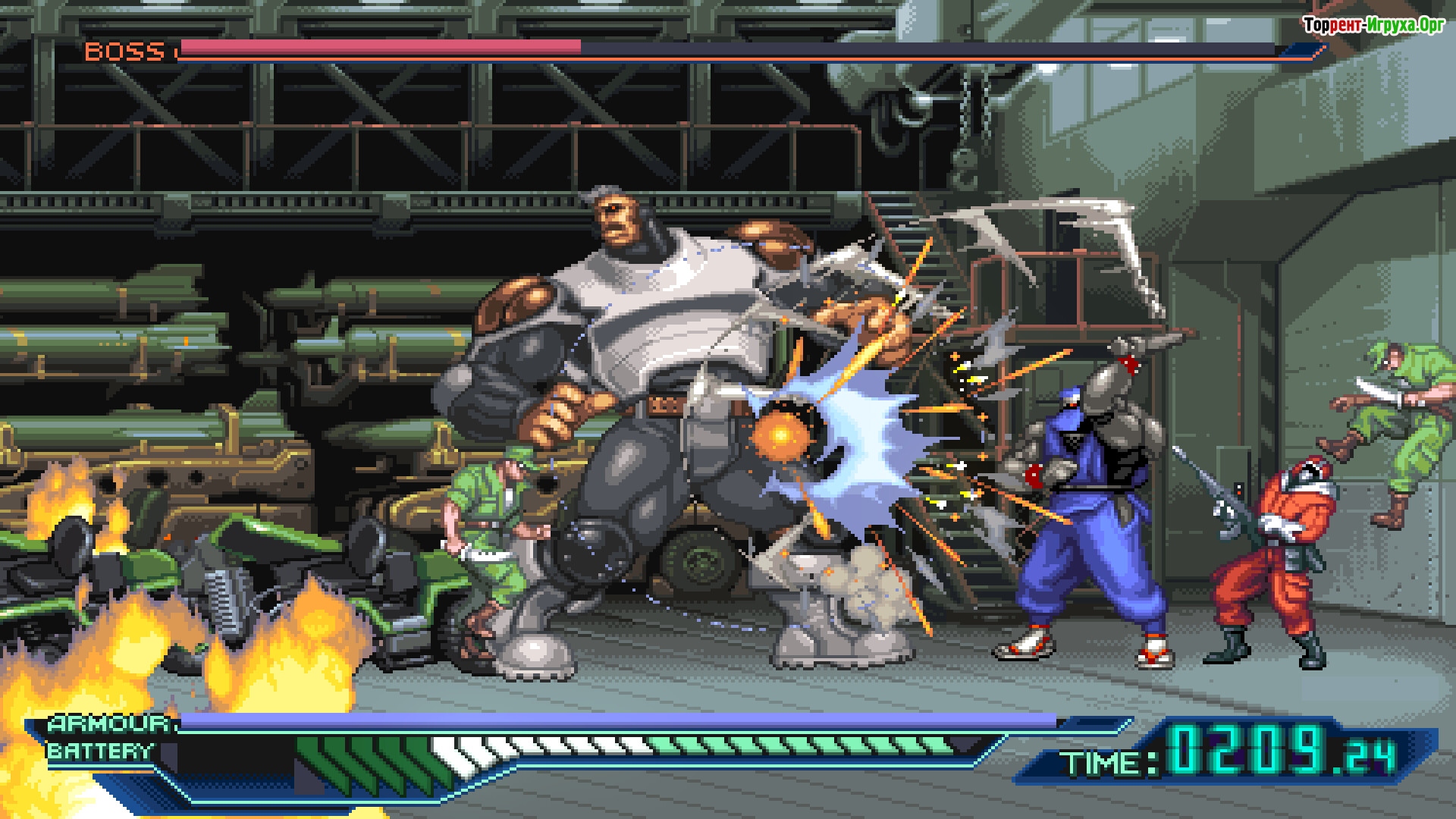 The Ninja Saviors: Return of the Warriors — это ремастер классической игры в жанре «beat 'em up», представленный разработчиком NatsumeAtari в 2023 году. Этот проект объединяет яркий пиксельный арт и захватывающую музыку, создавая аутентичную атмосферу ниндзя-боев в стилистике 16-битных игр.