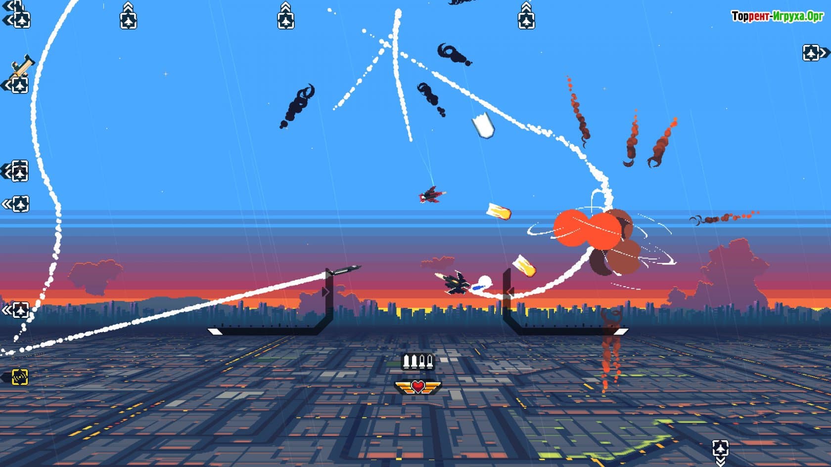 Ваш боевой самолет можно прокачивать, выбирая подходящее вооружение и улучшая характеристики под стиль игры. В арсенале доступны мощные орудия, такие как мега-лазер и ракетные рои, которые помогут справиться с роботами-киллерами. Опытные игроки смогут оценить многоствольные пулеметы и форсажные камеры, которые делают схватки динамичными и напряжёнными, несмотря на ограниченный запас здоровья.