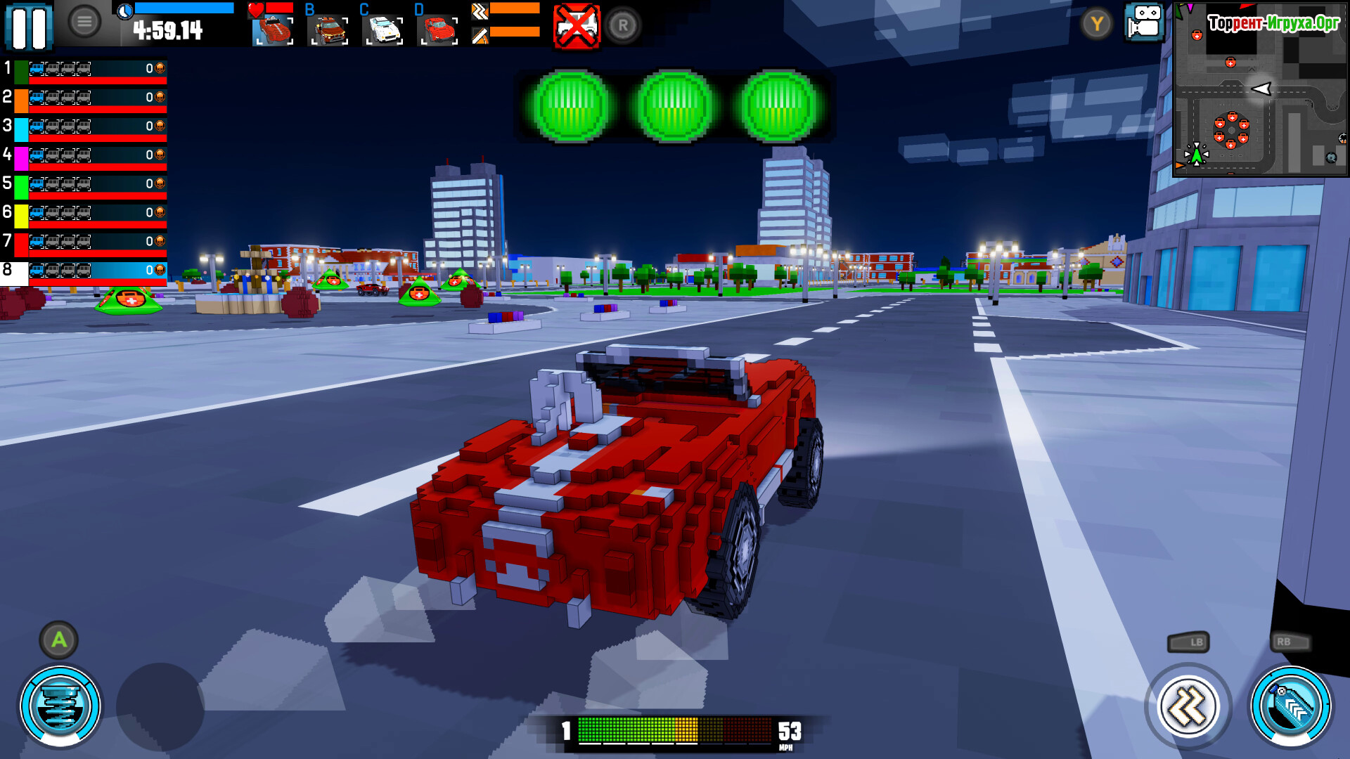 Бонусы, разбросанные по карте, значительно меняют ход событий: силовые поля, турбоускорители и различные ловушки помогут вам получить преимущество и превратить битву в настоящее поле разрушений. Арены разнообразны — от городских парков и спортивных площадок до футуристических трасс среди облаков, где скорость и реакция решают исход каждой гонки.