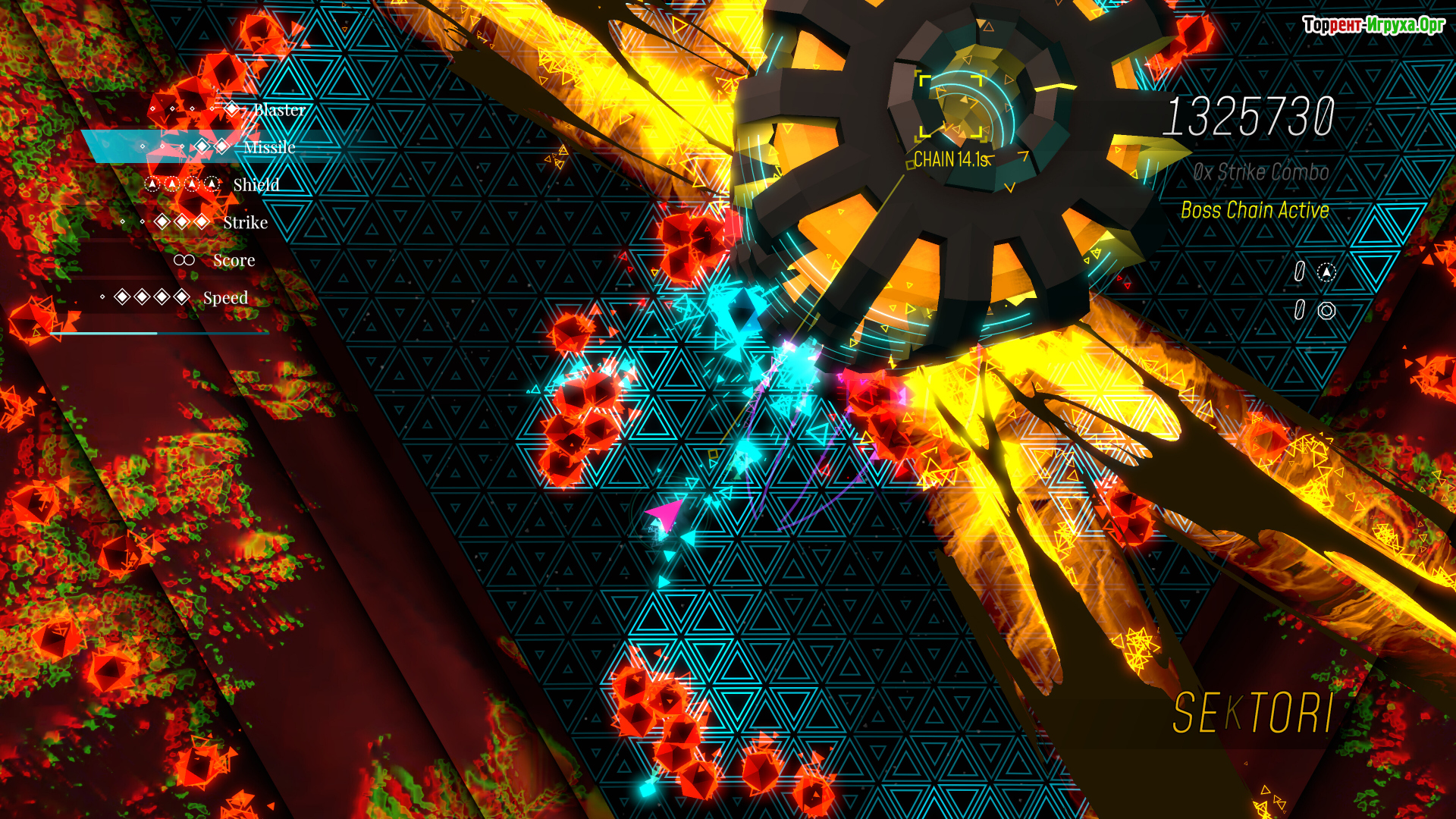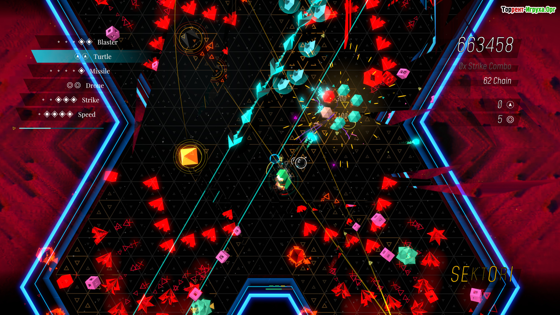Сюжетная кампания разделена на пять уникальных миров, каждый из которых обладает своим темпом и набором правил. Боссы в игре — это не просто сильные противники, а изменяющиеся испытания, способные адаптироваться под действия игрока и требующие мгновенной реакции и стратегического мышления. Музыка в Sektori выступает не только фоном, но и неотъемлемой частью геймплея, усиливая атмосферу и способствуя погружению в каждое сражение.