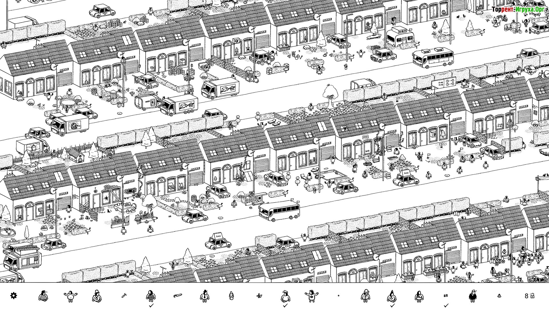 Hidden Folks — это уникальная казуальная игра от разработчика Adriaan de Jongh, выпущенная в 2017 году, в которой игрокам предстоит искать предметы и человечков на детально прорисованных черно-белых картинах, выполненных вручную. Игра предлагает спокойный, но увлекательный игровой процесс, где важна внимательность и терпение.