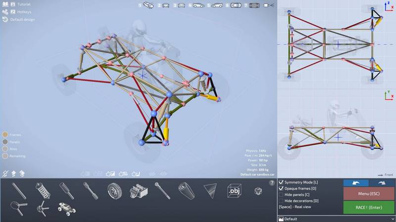 Одной из ярких особенностей является реалистичная физика мягких тел, что придает процессу строительства машин дополнительную глубину. Обратите внимание, что вы будете создавать деформируемые автомобили, и их разрушение станет поистине захватывающим зрелищем. Игра предоставляет возможность пользователям создавать свои собственные автомобили, трассы и карты, а также делиться этими творениями с сообществом игроков.