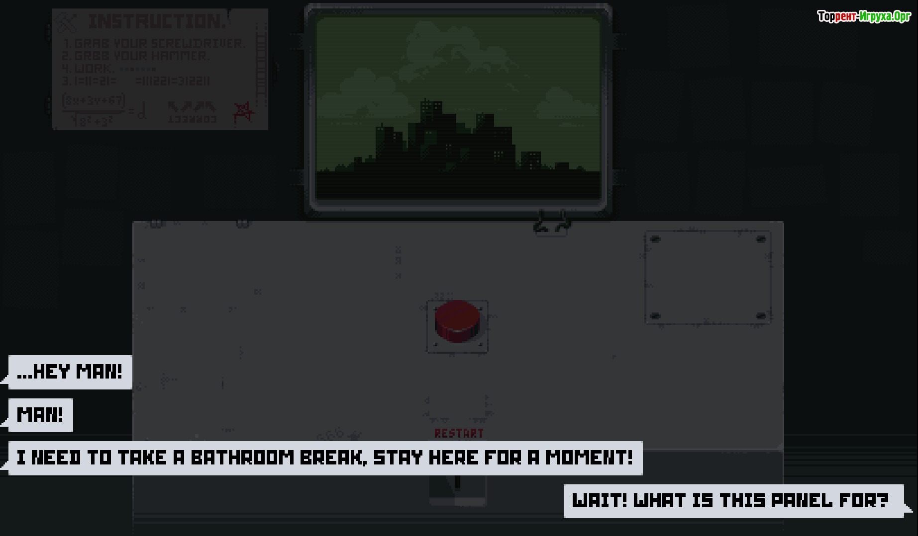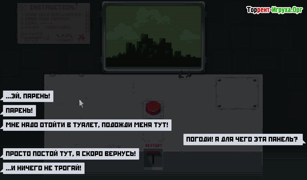 Please, Don’t Touch Anything — это необычная криптографическая игра от разработчика Four Quarters, выпущенная в 2015 году. В ней вам предстоит столкнуться с загадочной панелью с одной красной кнопкой, пока ваш коллега отсутствует. Удержитесь ли вы от искушения нажать её и узнать, что скрывается за этим простым интерфейсом?