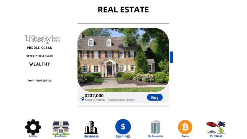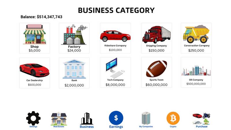 Погрузитесь в увлекательный мир "Billionaire Simulator", где вам предстоит начать с полнейшего нуля, с пустым банковским счетом. Ваша основная задача – накопить миллиард долларов. Для достижения поставленной цели вам необходимо разработать стратегию для открытия своего бизнеса, приобретать недвижимость и удачно её продавать. Вы сами решаете, каким образом будете зарабатывать. Безграничные возможности по расширению бизнеса позволяют вам собрать внушительный автопарк. Кто бы не мечтал управлять собственными компаниями, приобретать острова и путешествовать по бескрайним океанам? Если вы готовы принять этот вызов, не медлите и скачивайте игру "Billionaire Simulator".