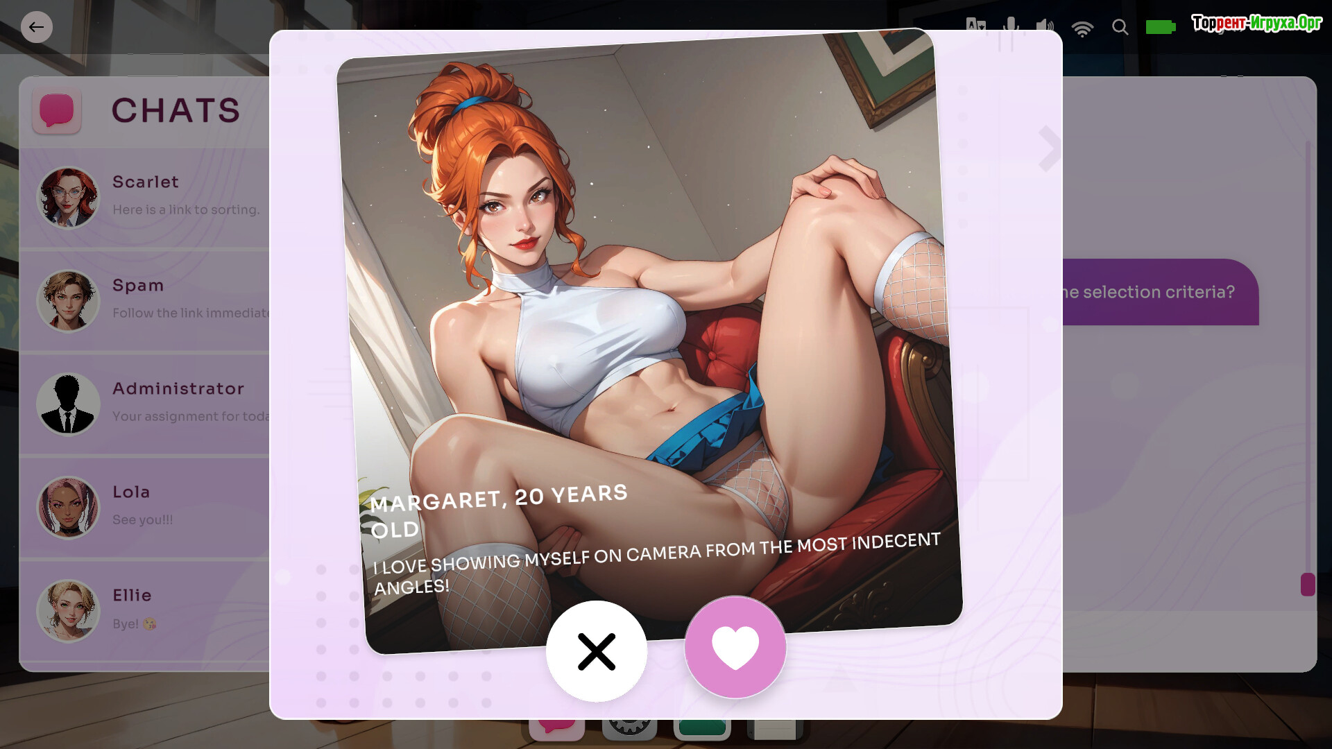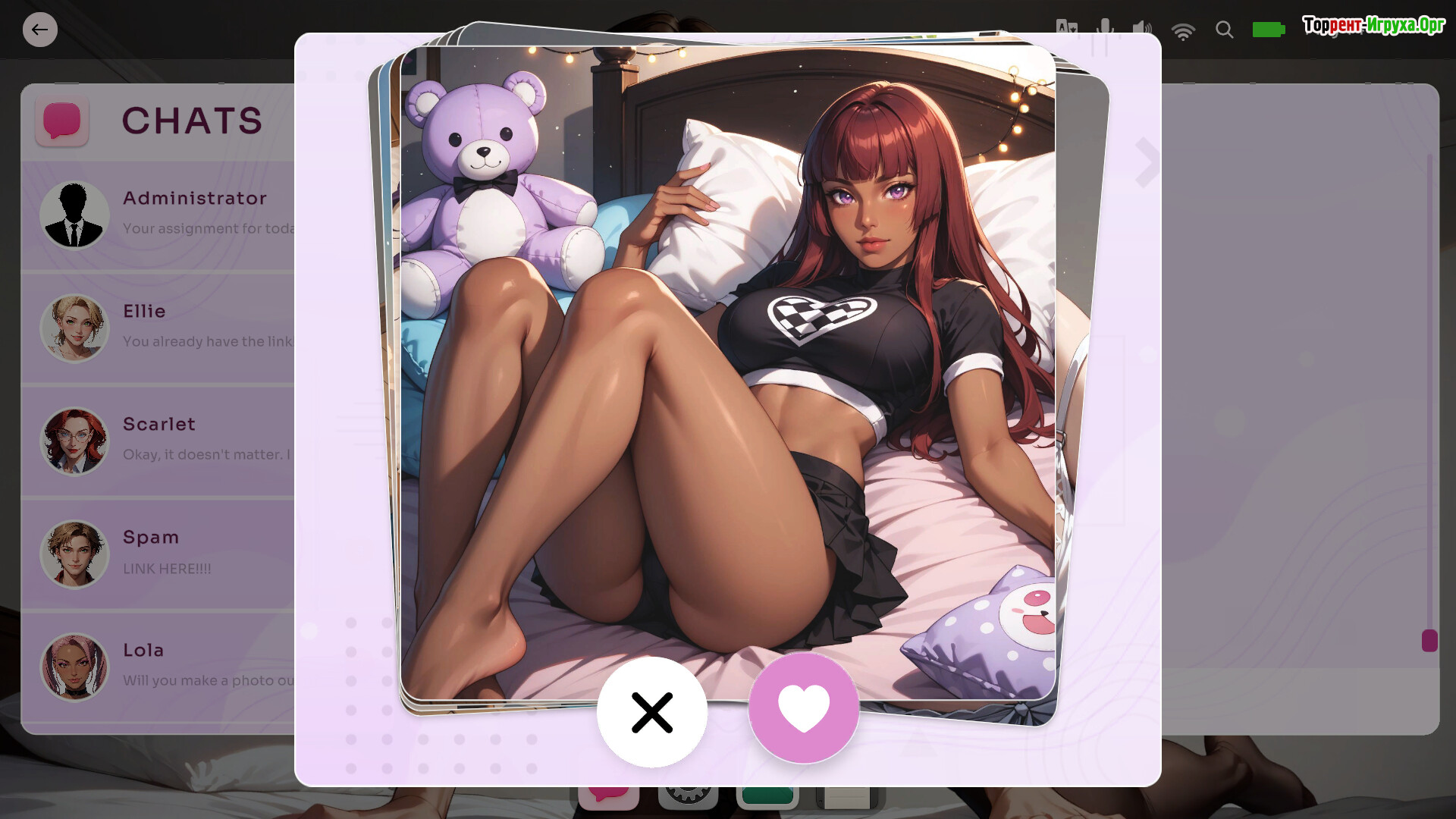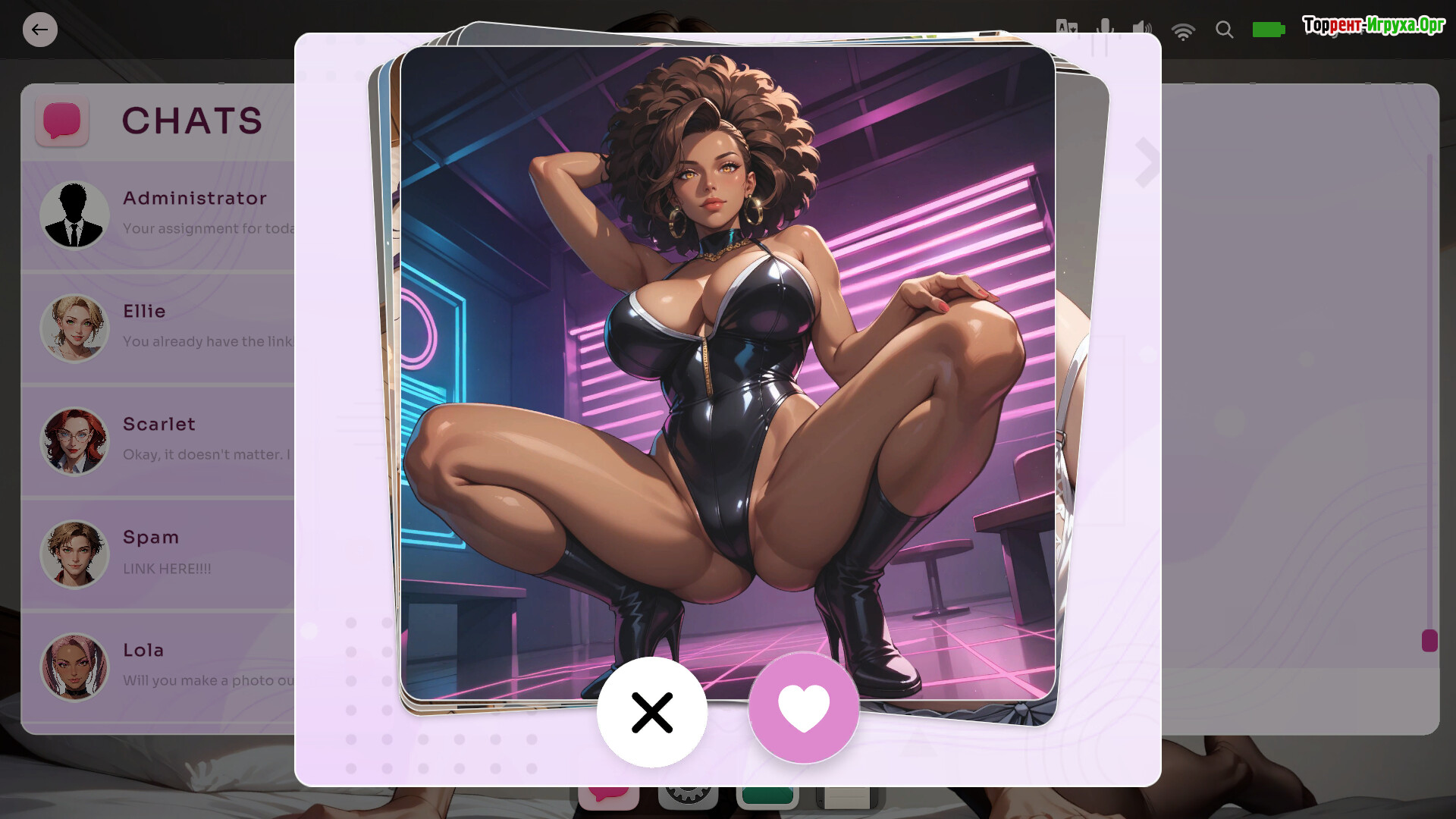 Игра сочетает симуляцию общения и флирта с интерактивными мини-сценами, предлагая интерфейс в стиле цифрового офиса с реалистичными чатами и медиа. Каждый персонаж обладает уникальным стилем поведения и визуальной подачей, а степень откровенности развивается постепенно через естественные диалоги, создавая захватывающий и живой игровой опыт.