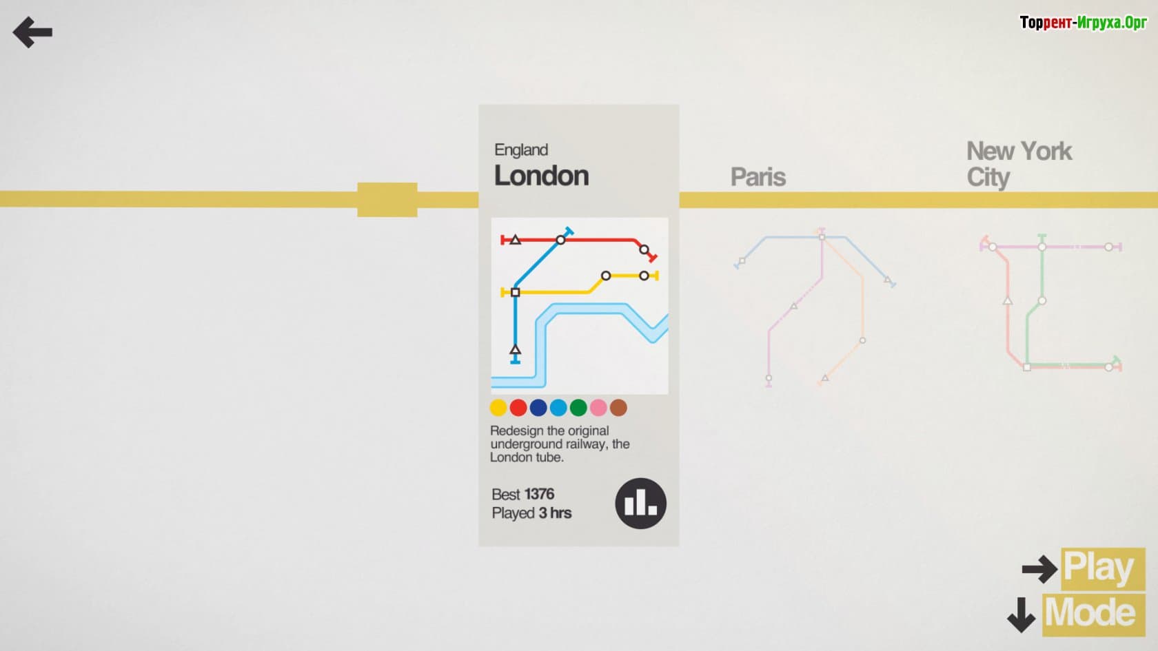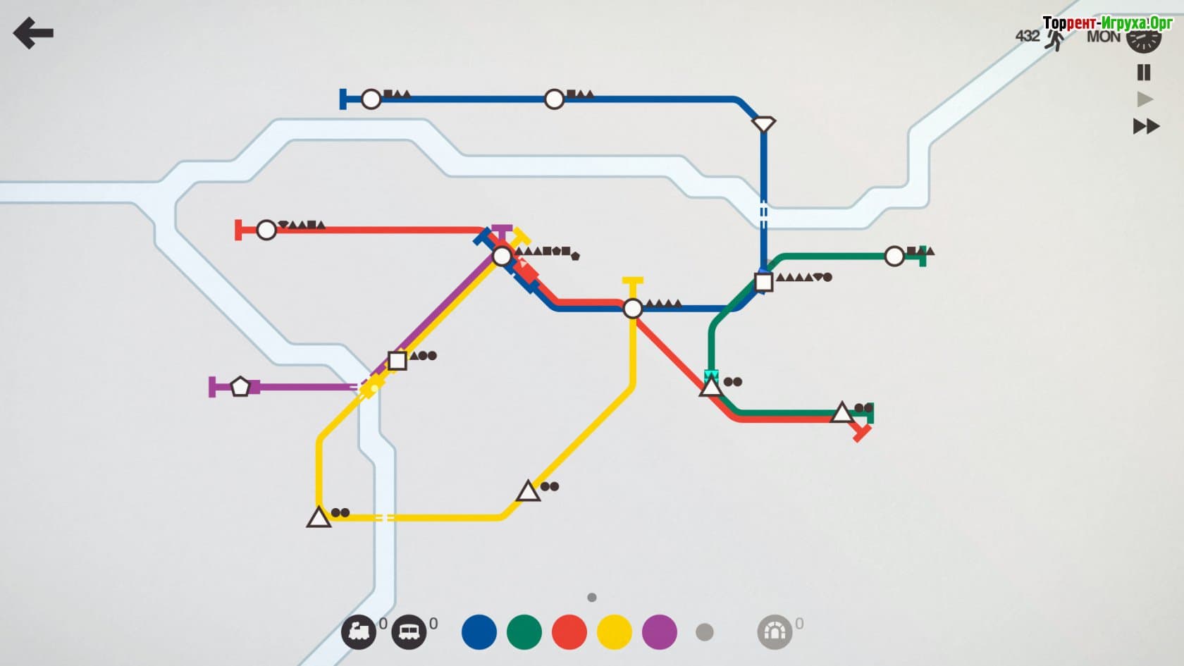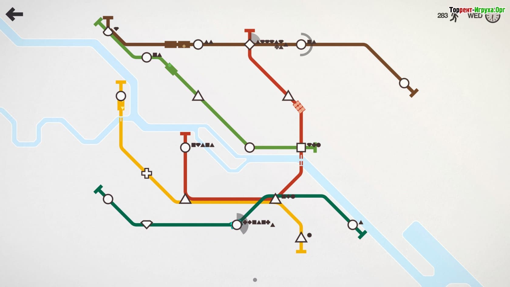 Игра Mini Metro от разработчика Dinosaur Polo Club, вышедшая в 2015 году, предлагает уникальный опыт создания городской транспортной системы. В отличие от привычных градостроительных симуляторов, эта игра фокусируется на построении метро через продуманное соединение различных линий и станций. Вам предстоит внимательно изучать символы и грамотно прокладывать маршруты, чтобы обеспечить безопасное и эффективное движение поездов по мегаполису.