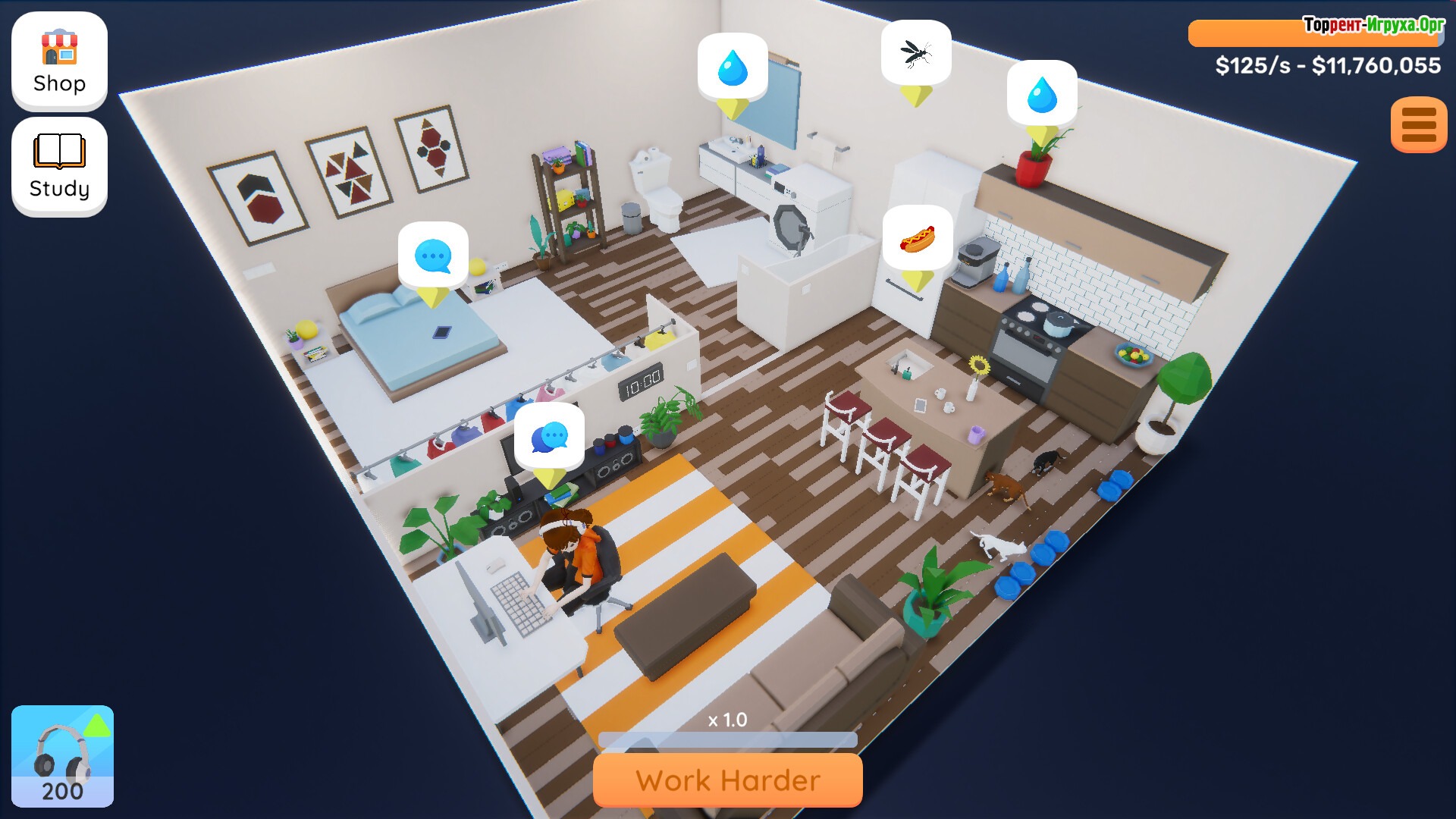 В процессе игры вы сможете заниматься улучшением домашнего пространства, постепенно переезжая в новые квартиры и расширяя комфорт своего жилья. Особое внимание уделено взаимодействию с питомцами – кошки требуют заботы и внимания, помогая создать уют и при этом не отвлекать от работы. Постепенное обновление предметов интерьера и техники делает процесс более интересным, позволяя автоматизировать рутинные задачи и минимизировать раздражающие обстоятельства.