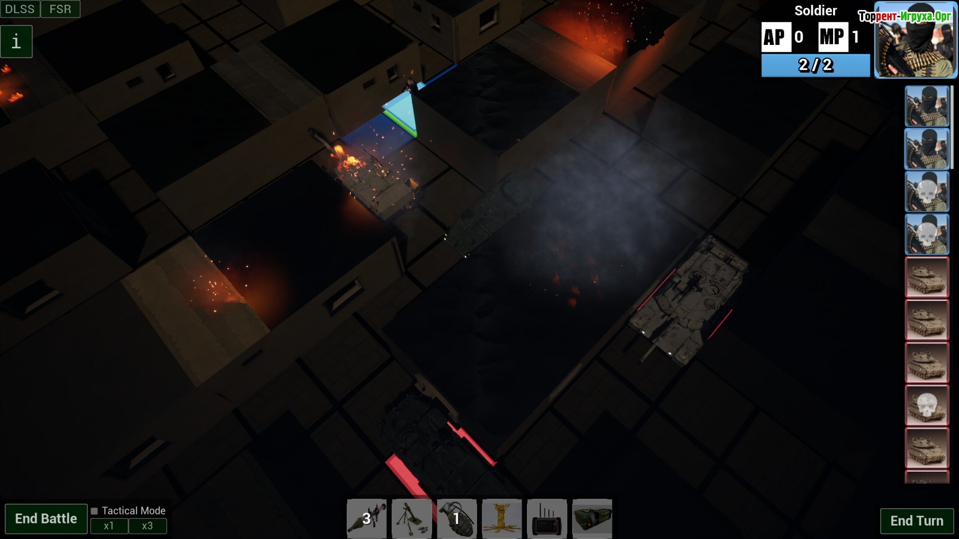 Сюжет игры разворачивается вокруг осады вашего города: всего четыре солдата против двадцати танков противника. Каждый юнит обладает пятью очками движения и одним очком действия за ход, что заставляет продумывать каждый шаг. Ваша главная задача – уничтожить все вражеские танки и обеспечить спасение хотя бы одного бойца, чтобы одержать заслуженную победу.