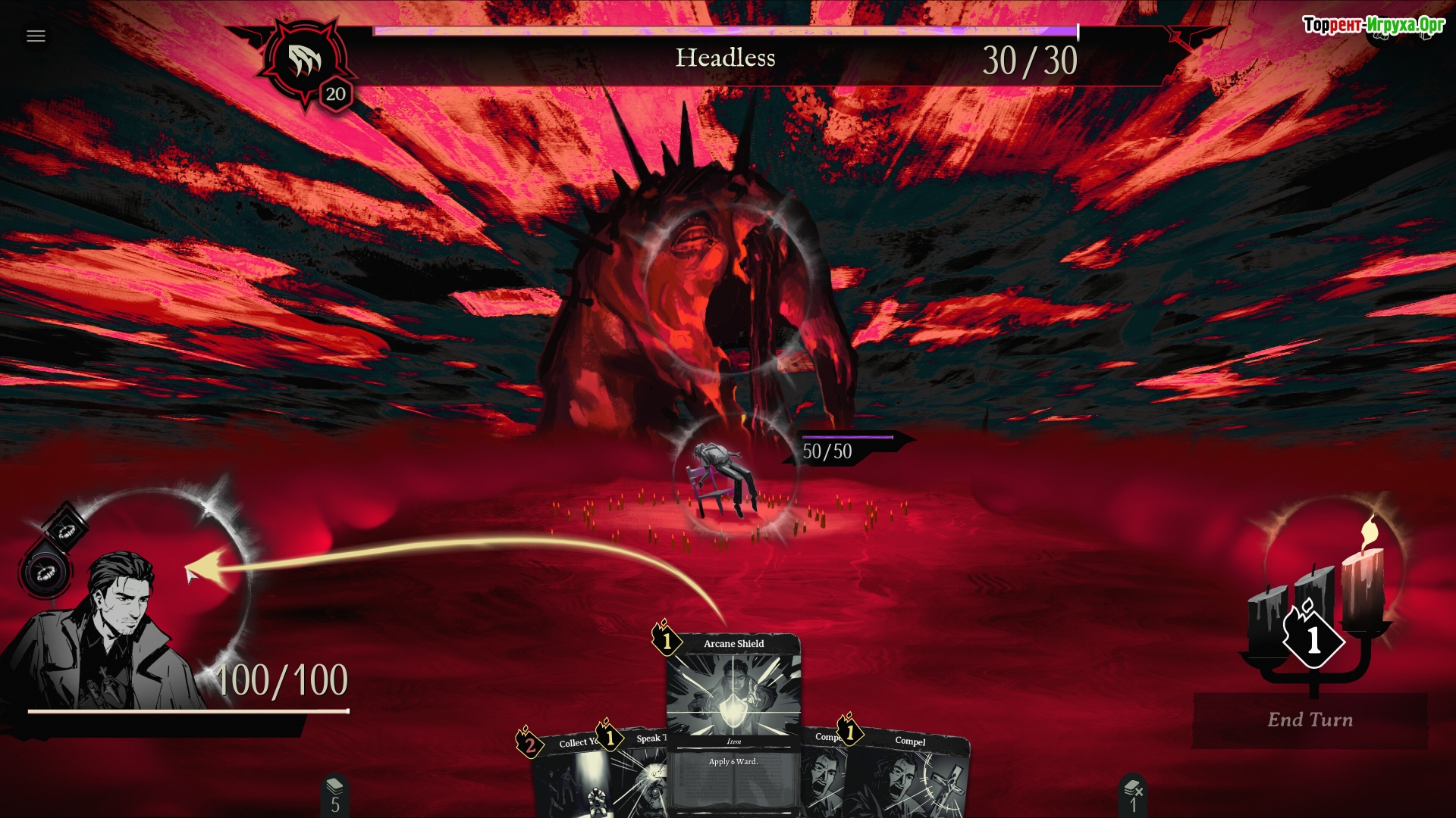 Игрок берёт на себя роль охотника, ранее священника, утратившего своё благословение и теперь ищущего искупление через борьбу с демонами. В этой игре колода — отражение души героя: каждая карта способна спасти или уничтожить. Призывать святую силу можно, жертвуя собственными ресурсами и сжигая свечи, что требует постоянного баланса между мощью и самоотречением. Такой подход делает игровой процесс глубоким и напряжённым.