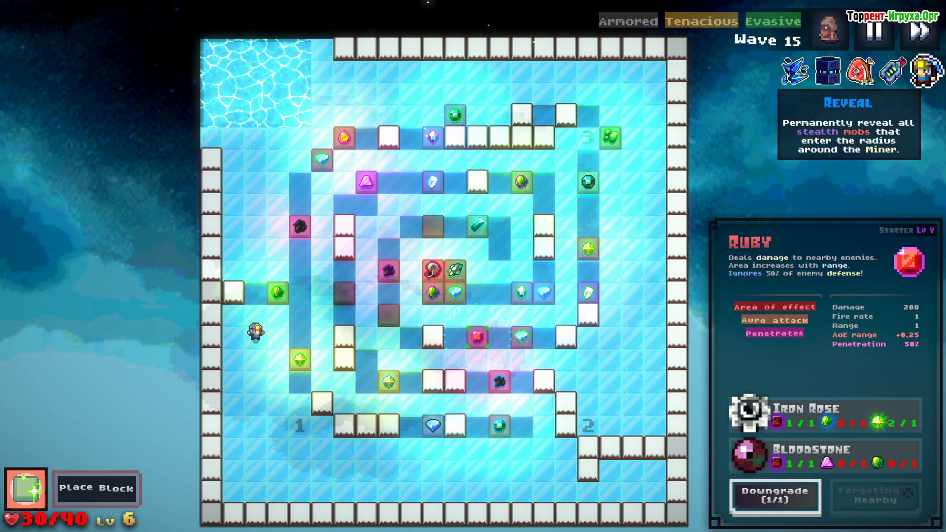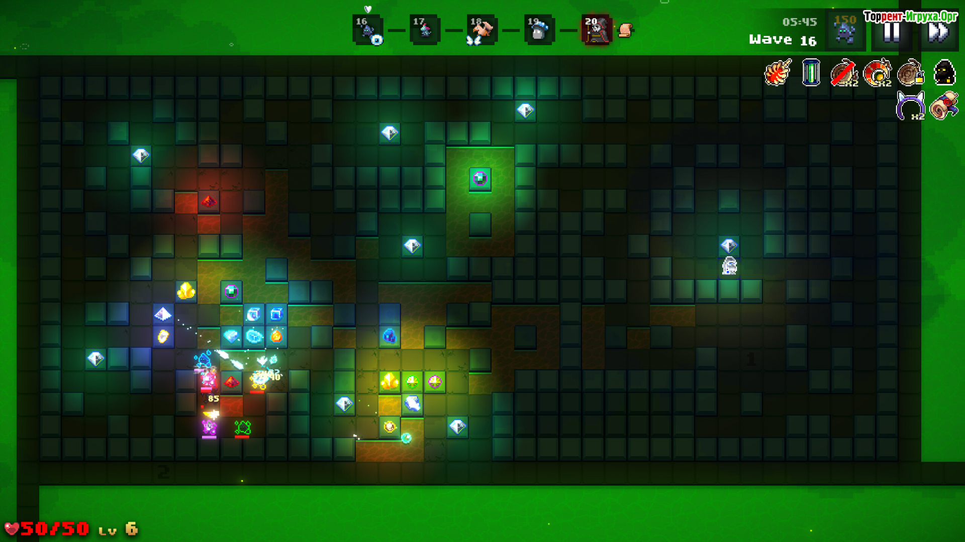 Каждый уровень начинается с планирования пути для наступающих врагов. Управляя рельефом и прокладывая тоннели, игрок превращает карту в сложную ловушку. Размещение кристаллов вдоль маршрута становится способом усилить защиту — важную роль играют их позиционирование и дальность поражения. Такой подход делает лабиринт не просто препятствием, а эффективным оружием против нападающих.