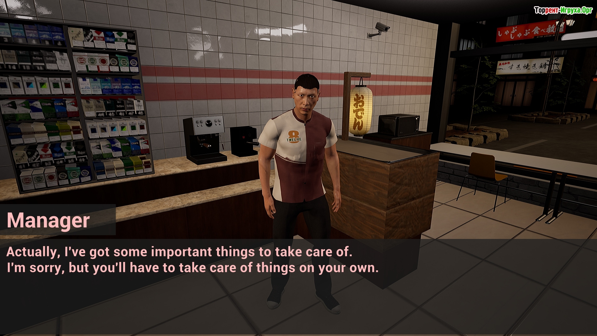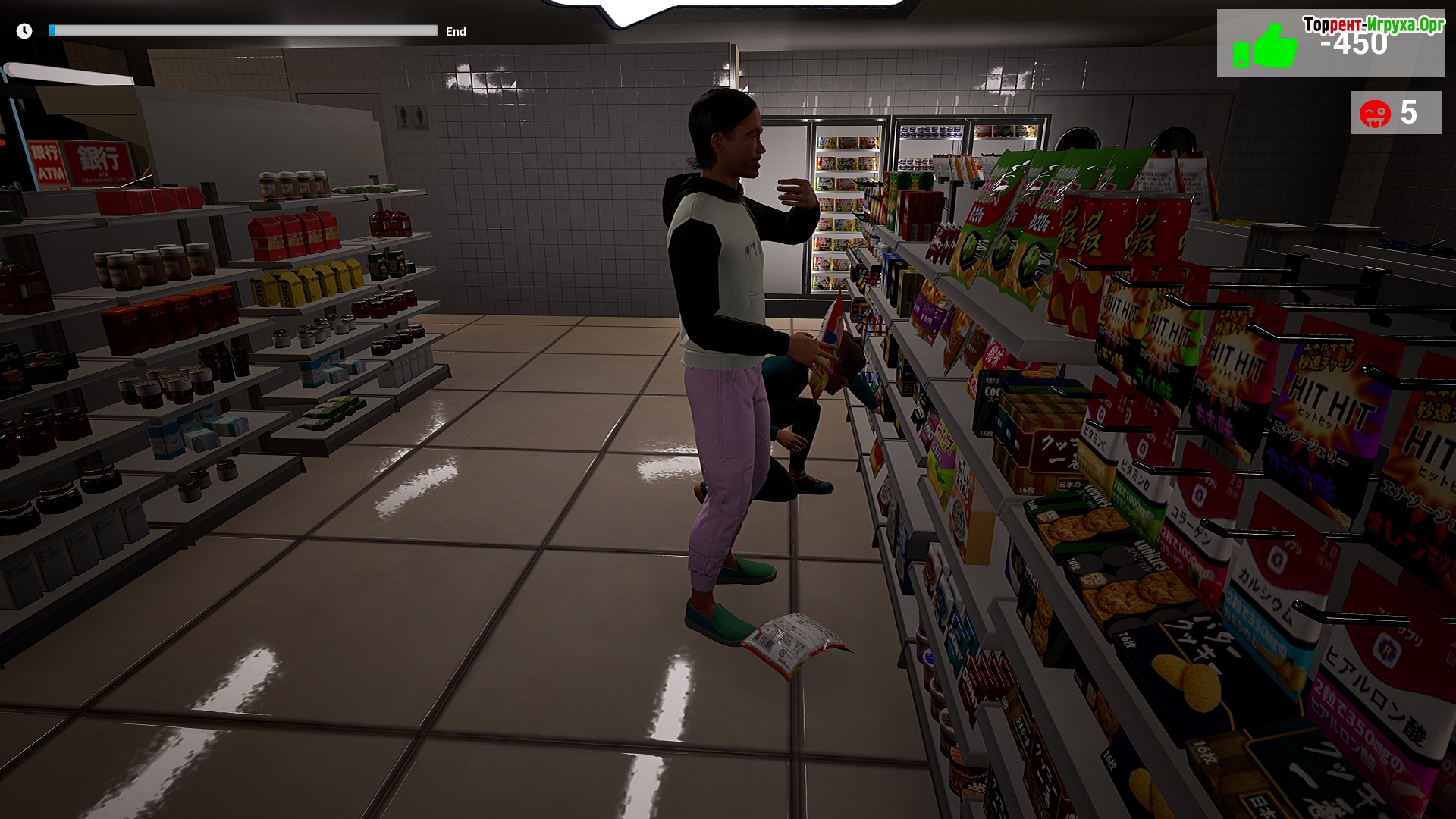 Главный герой только что переехал в город и начинает свою первую смену с необычного «фальшивого» задания. Вскоре после этого в магазине появляются навязчивые посетители, которые могут открыть холодильники и даже оставлять записи на стенах, добавляя игре комический и динамичный характер. В одиночку контролируйте обстановку и боритесь с наплывом надоедливых покупателей, чтобы сохранить порядок и заработать на жизнь.